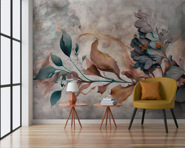 Carta da parati Decorazione murale con fiori e foglie