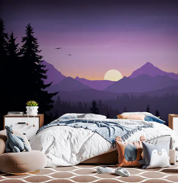Carta da parati Sfondo con uccelli che volano sulle montagne