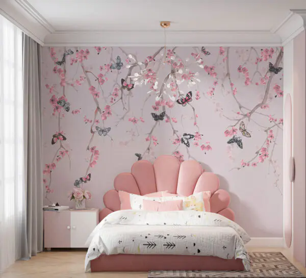 Carta da parati Fiori delicati con toni rosa tenui