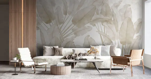 Carta da parati murale Sereno motivo di foglie di palma su sfondo neutro