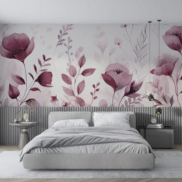 Carta da parati Pittura di fiori con foglie
