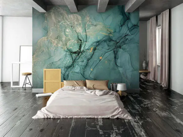 Carta da parati Arte fluida astratta bianca e verde acqua