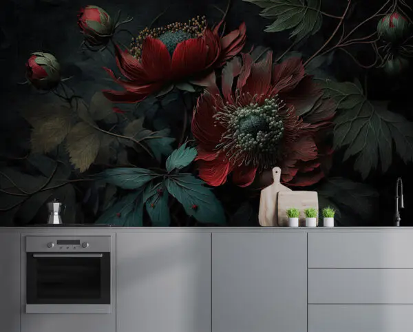 Carta da parati murale Pittura di fiori su una superficie bianca
