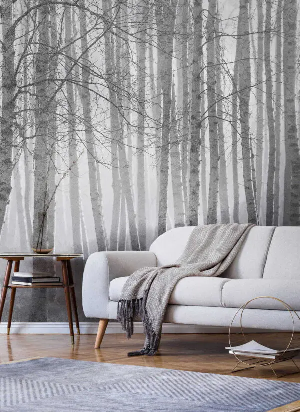 Carta da parati murale Foresta nebbiosa con alberi e raggi di sole