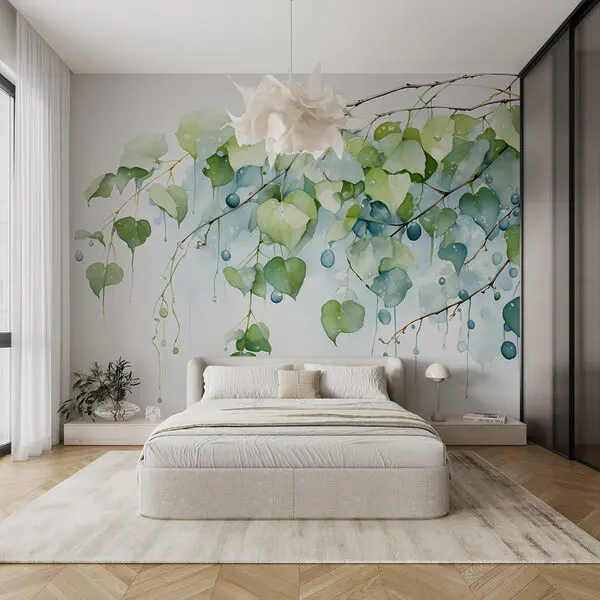 Carta da parati Eleganti motivi monocromatici di foglie che danzano