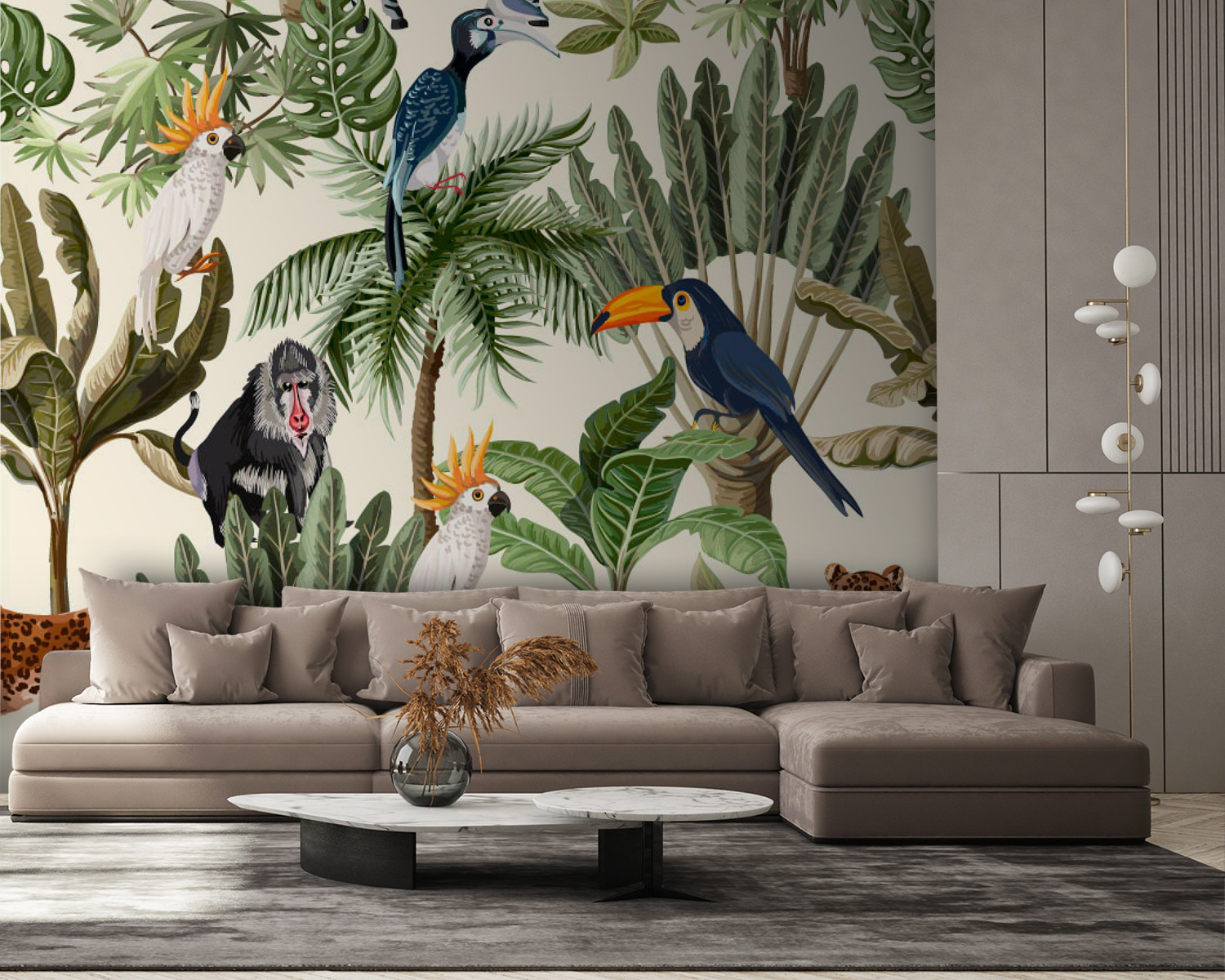 Trasformate qualsiasi stanza in un paradiso tropicale con questo vivace murale con piante affascinanti e uccelli esotici, perfetto per chi desidera un tocco di colore! Immaginate di entrare nel vostro spazio e di sentirvi trasportati in una giungla lussureggiante. Le combinazioni giocose di pappagalli, leopardi e altre creature vivaci invitano a un senso di avventura. È come portare un pezzetto di natura in casa, senza gli insetti! Ideale per la cameretta, il soggiorno o qualsiasi altro luogo che abbia bisogno di un po’ di allegria, questo murale è un delizioso spunto di conversazione. È irresistibile!