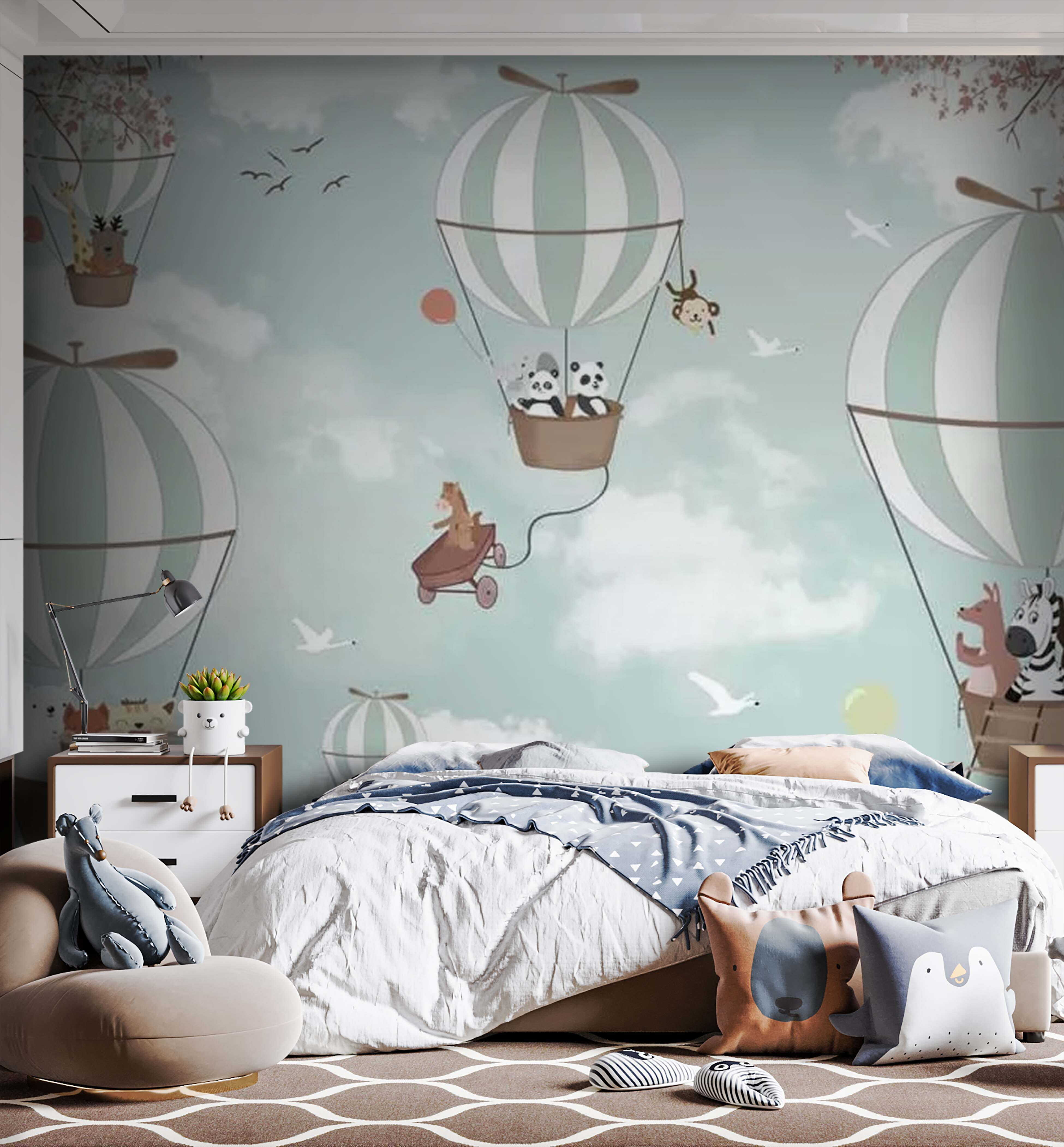Immaginate di dare un tocco stravagante alla stanza dei vostri bambini con il murale “Cartoon Panda on a Swing”! Perfetto per i piccoli sognatori, questo murale trasporta magicamente qualsiasi spazio in un cielo pieno di panda che si dondolano su adorabili mongolfiere. È come entrare ogni giorno in un dolce libro di fiabe. I simpatici panda fanno sentire la stanza leggera e gioiosa, come se fosse appena arrivata una leggera brezza. Che sia per la camera di una figlia, per la stanza dei giochi di un figlio o anche per una nursery, questo murale è il mix perfetto di divertimento e tranquillità. Inoltre, i colori pastello creano un’atmosfera rilassante, ideale per rilassarsi dopo una giornata piena di avventure. Immaginate l’ora della fiaba sotto questi panda fluttuanti: un classico immediato! La parte migliore? Vedere il viso del bambino illuminarsi quando vede i suoi nuovi amici panda. Pura magia sulle pareti… cosa c’è da non amare?