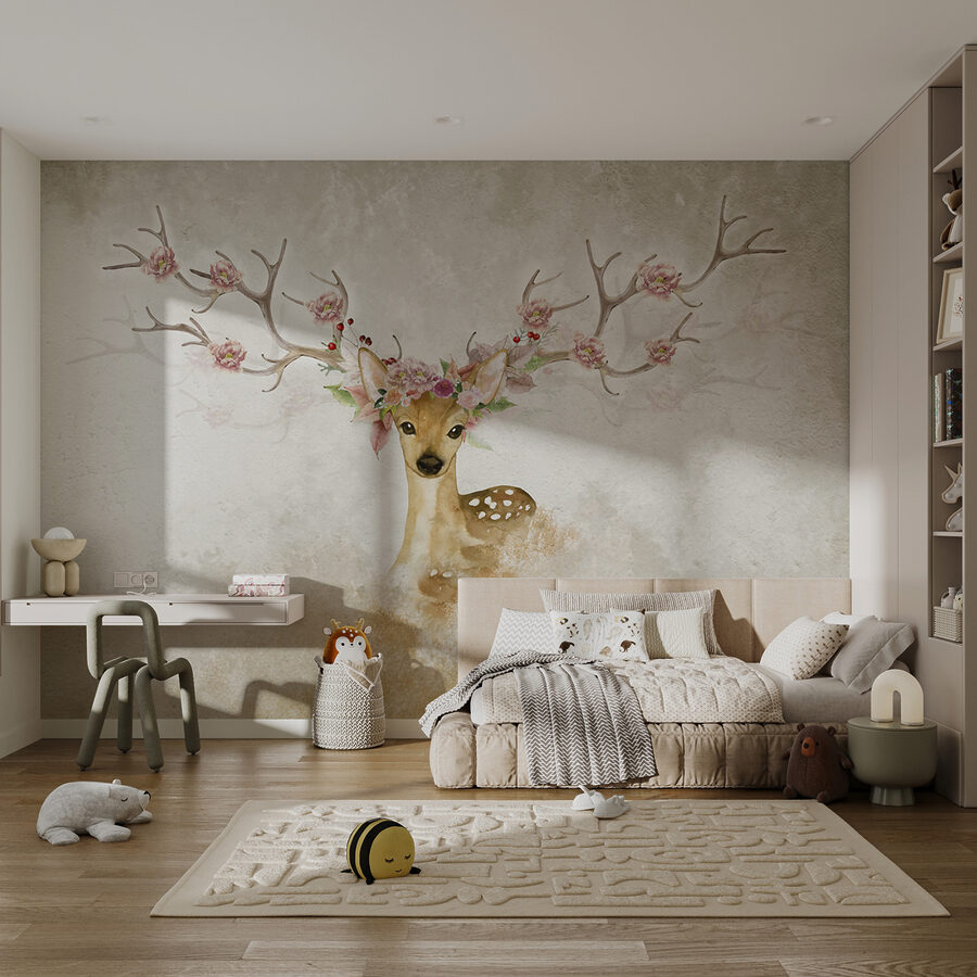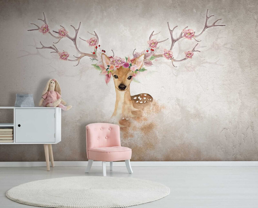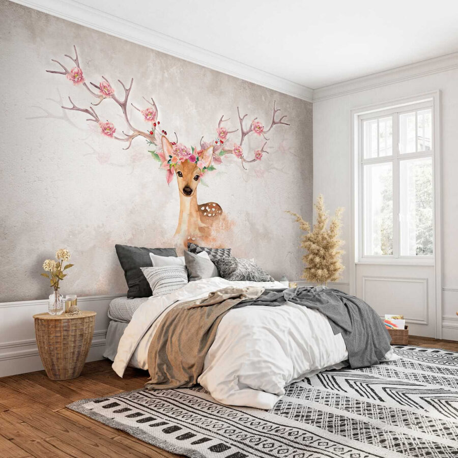 3 recensioni per Carta da parati Acquerello di un cervo con fiori sulla testa