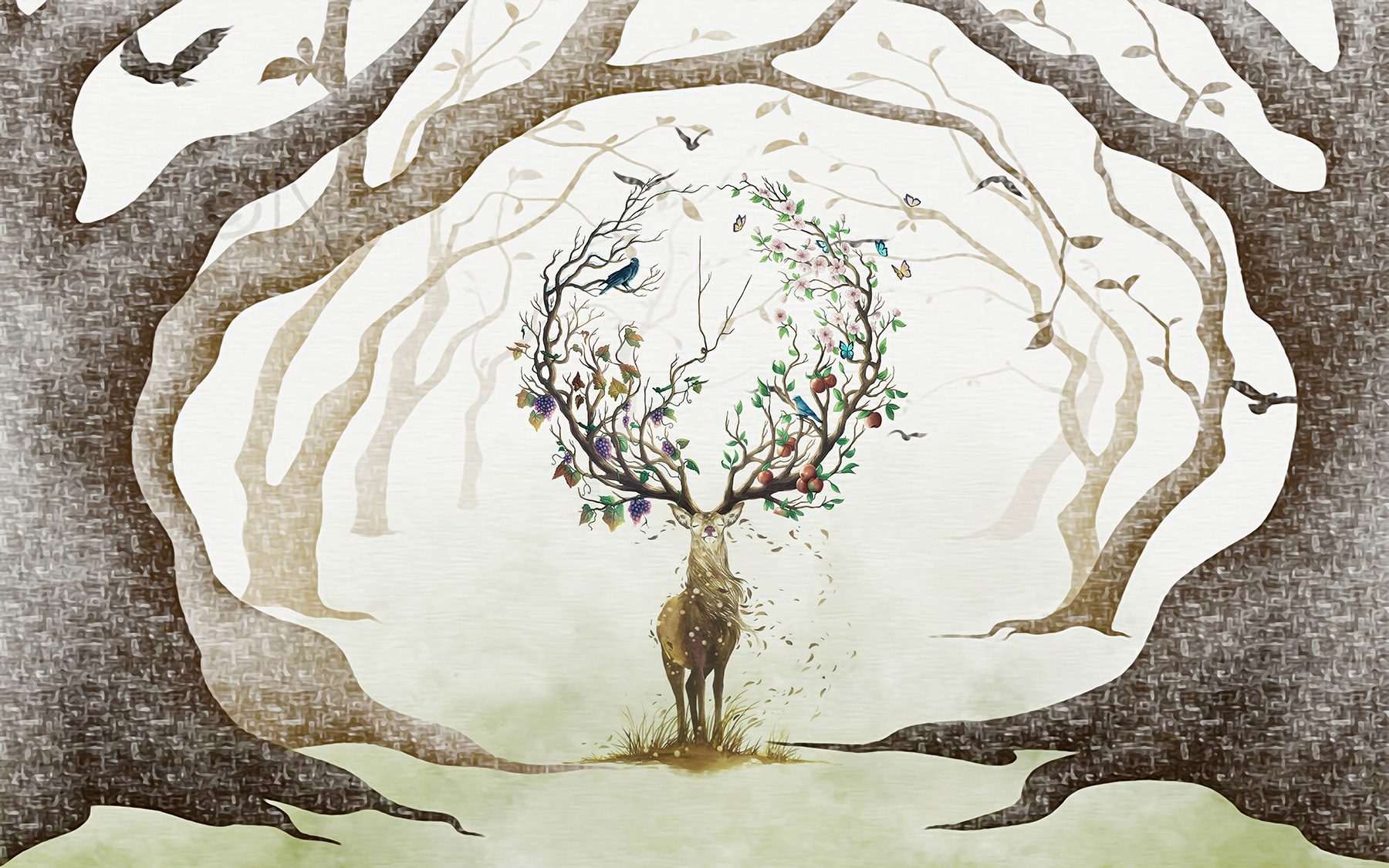 Immaginate questo: un cervo sereno in piedi con grazia, le sue corna trasformate in rami rigogliosi, che esplodono con i colori della natura. Questo murale non è solo una decorazione da parete; è un invito a rallentare e sorseggiare il caffè del mattino mentre si abbraccia l’atmosfera tranquilla. Immaginate di innaffiare le vostre piante e di dare un’occhiata a questo capolavoro, sentendovi come se foste in una foresta incantata piuttosto che nel vostro salotto.