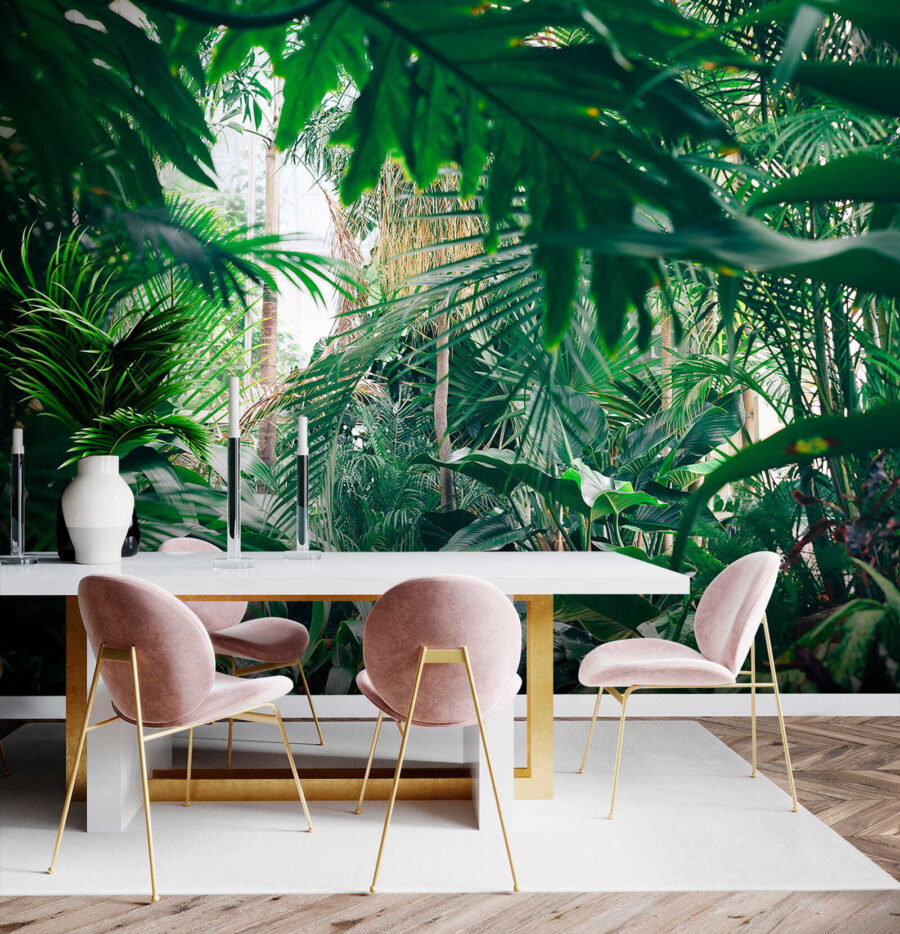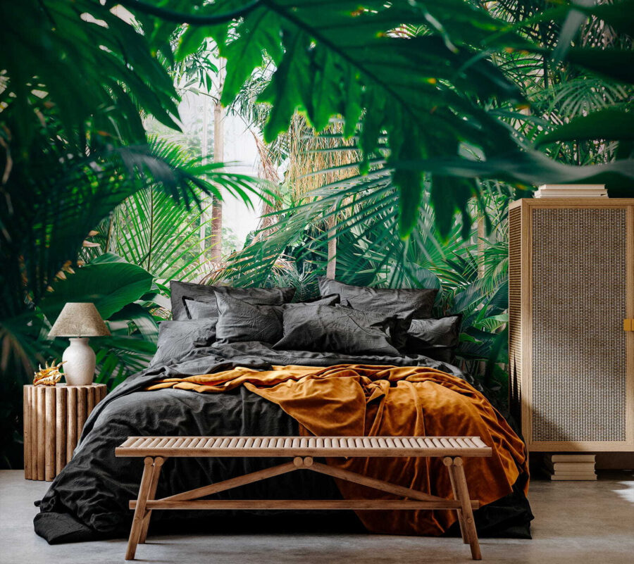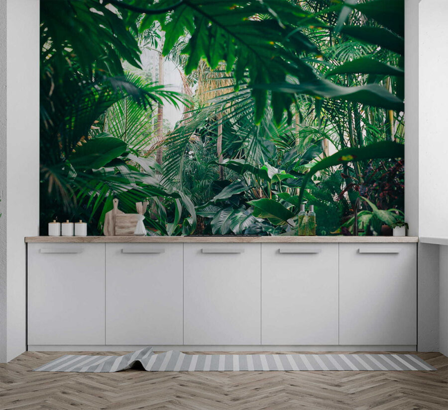Trasformate qualsiasi stanza in un paradiso tropicale con questo splendido murale raffigurante un fogliame lussureggiante della giungla immerso nella luce del sole. Immaginate di entrare nel vostro spazio e di sentirvi come se foste entrati direttamente in una giungla serena, dove l’aria è fresca e la luce del sole filtra attraverso le foglie nel modo giusto. È come portare una fetta di natura all’interno dell’abitazione senza l’uso di insetticidi! Perfetto per chi desidera un po’ di verde ma non ha il pollice verde. Gli amici penseranno che avete trovato il luogo di vacanza definitivo proprio a casa vostra. Immaginate di accoccolarvi con un buon libro o di sorseggiare una tazza di caffè, circondati da questa vivace fuga. Non è solo un murale, è una boccata d’aria fresca per le vostre pareti!