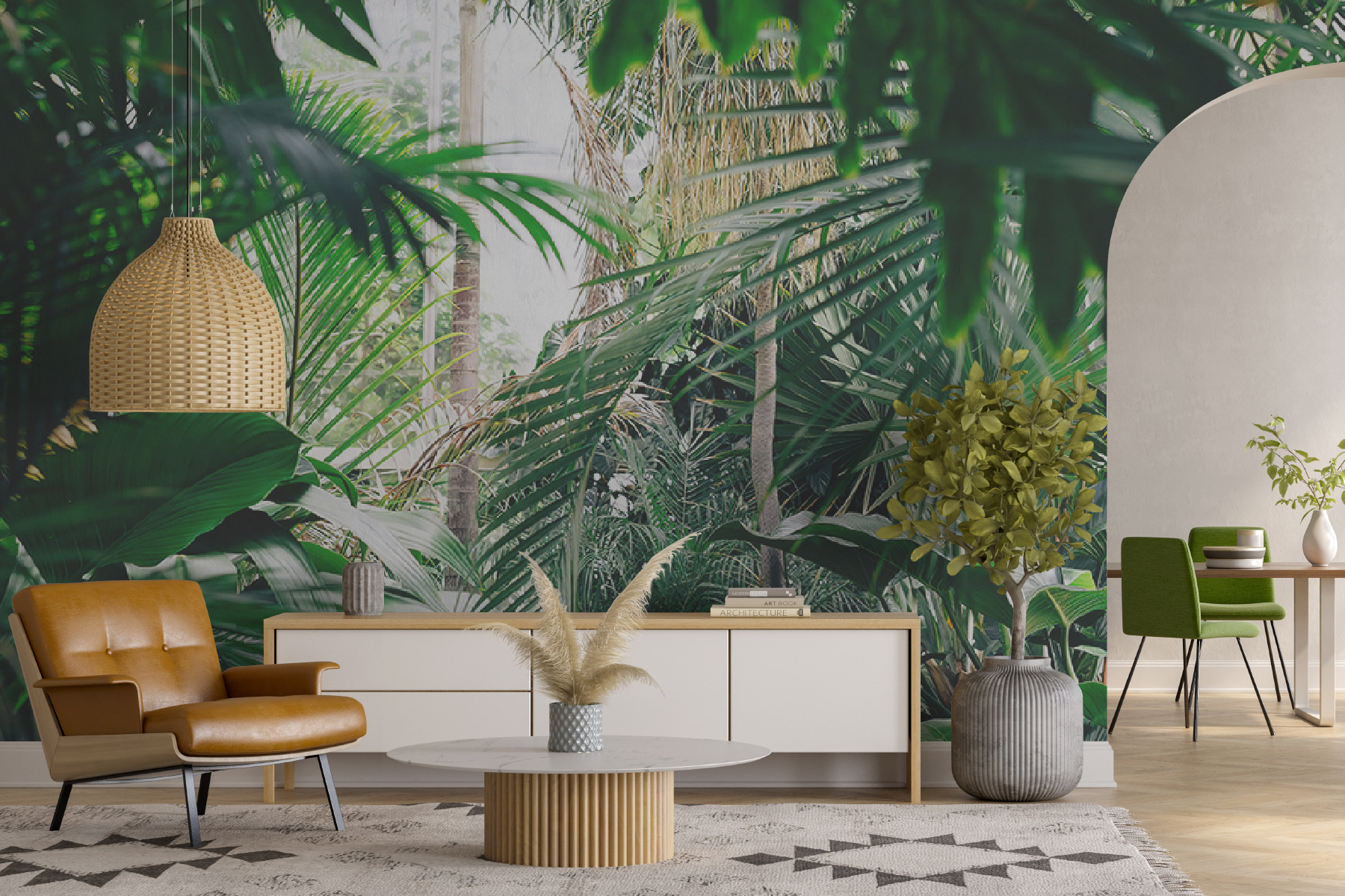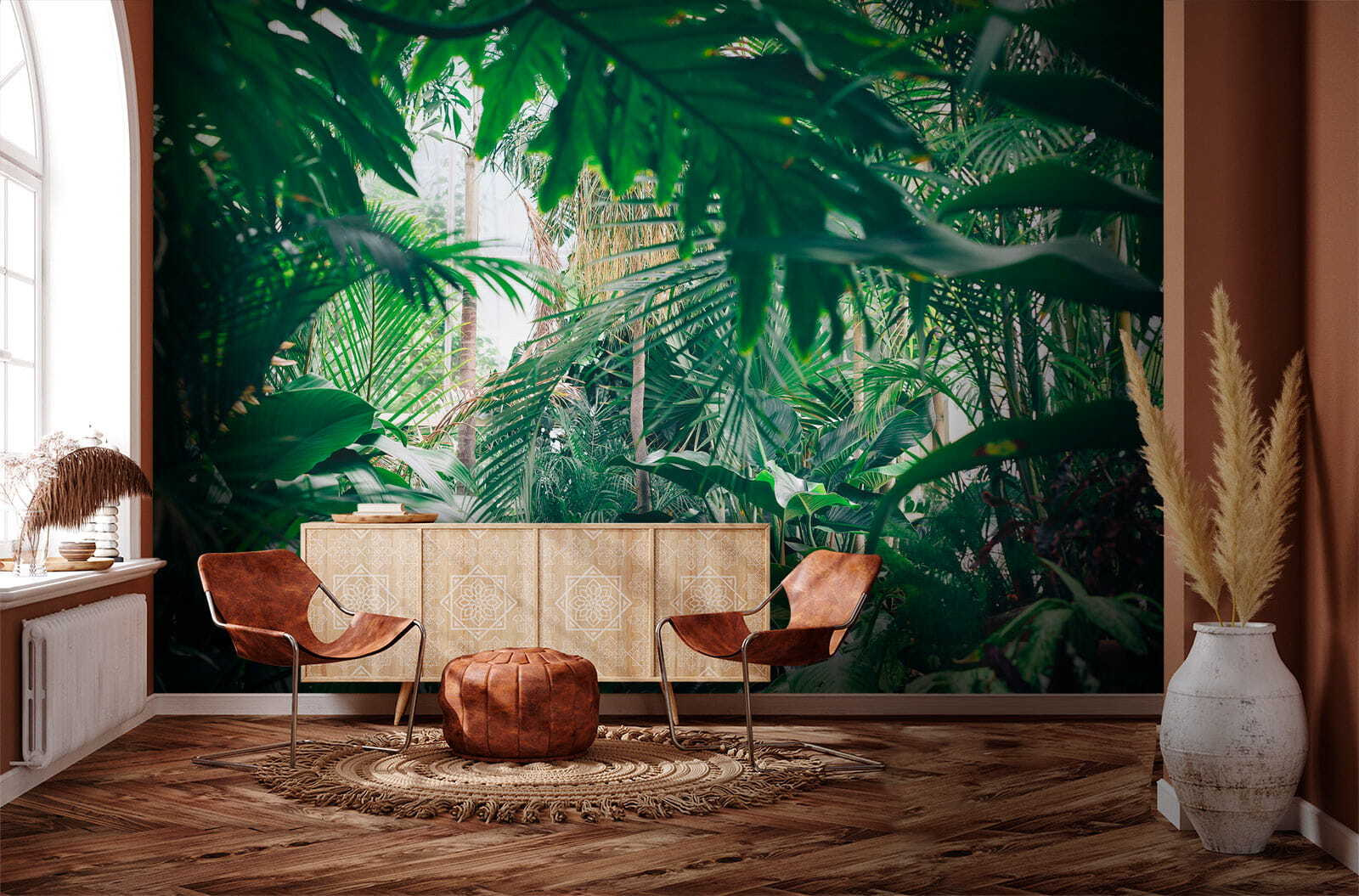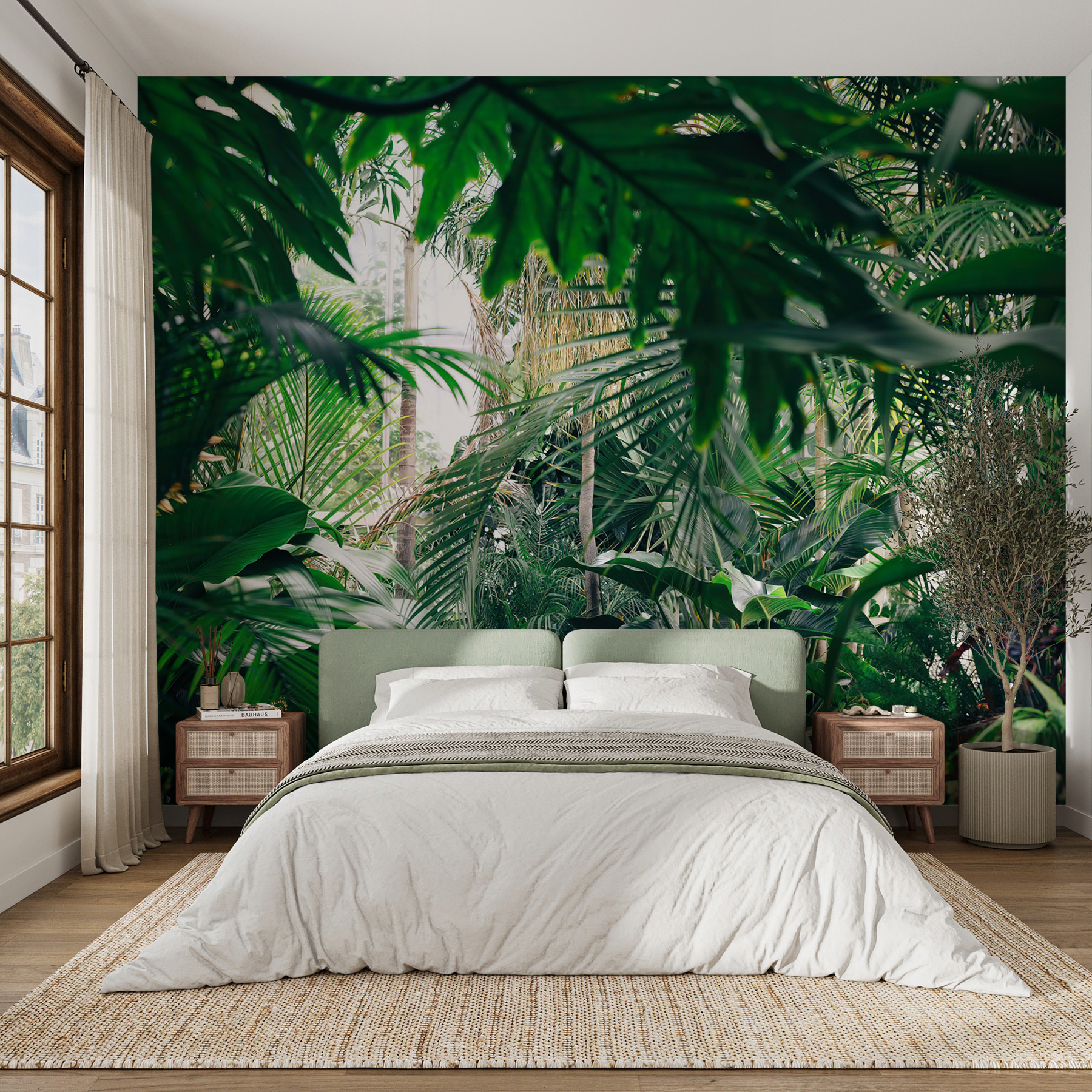 Trasformate qualsiasi stanza in un paradiso tropicale con questo splendido murale raffigurante un fogliame lussureggiante della giungla immerso nella luce del sole. Immaginate di entrare nel vostro spazio e di sentirvi come se foste entrati direttamente in una giungla serena, dove l’aria è fresca e la luce del sole filtra attraverso le foglie nel modo giusto. È come portare una fetta di natura all’interno dell’abitazione senza l’uso di insetticidi! Perfetto per chi desidera un po’ di verde ma non ha il pollice verde. Gli amici penseranno che avete trovato il luogo di vacanza definitivo proprio a casa vostra. Immaginate di accoccolarvi con un buon libro o di sorseggiare una tazza di caffè, circondati da questa vivace fuga. Non è solo un murale, è una boccata d’aria fresca per le vostre pareti!