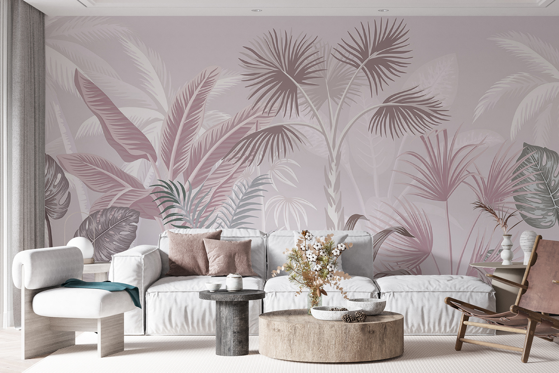 Immaginate di svegliarvi ogni mattina e di essere accolti dalle tonalità morbide e sognanti di questo disegno botanico con foglie pastello. È come avere un pezzo di giardino incantato proprio a casa vostra! Perfetto per chi ama un’estetica delicata e immersa nella natura, questo murale mescola delicatamente le tonalità del rosa, del verde e del beige per creare un’oasi serena.