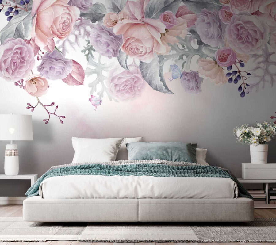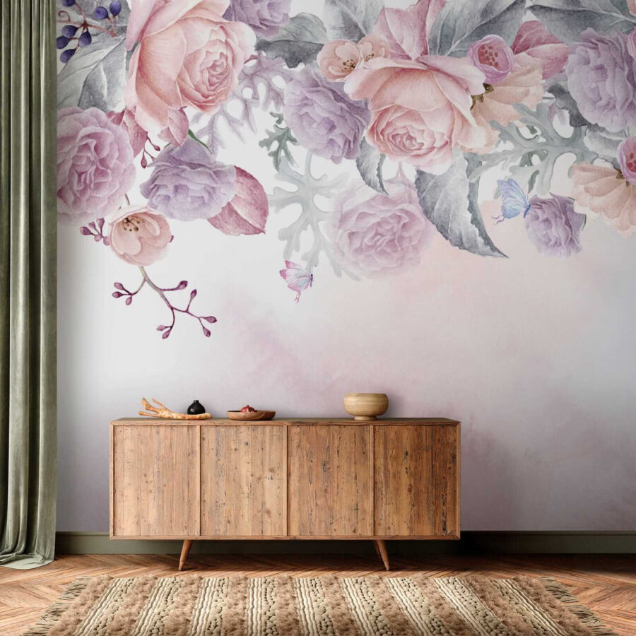 1 recensione per Carta da parati Fiori di colore rosa con delicate farfalle