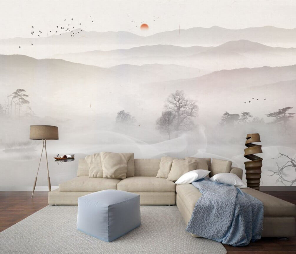 Trasforma qualsiasi stanza in un rifugio sereno con questo splendido murale raffigurante una barca che scivola su un lago nebbioso. Immagina questo: una leggera nebbiolina si alza dall’acqua mentre il sole fa capolino tra le montagne, diffondendo una calda luce che calma immediatamente l’anima. È come una boccata d’aria fresca proprio nel tuo spazio abitativo.