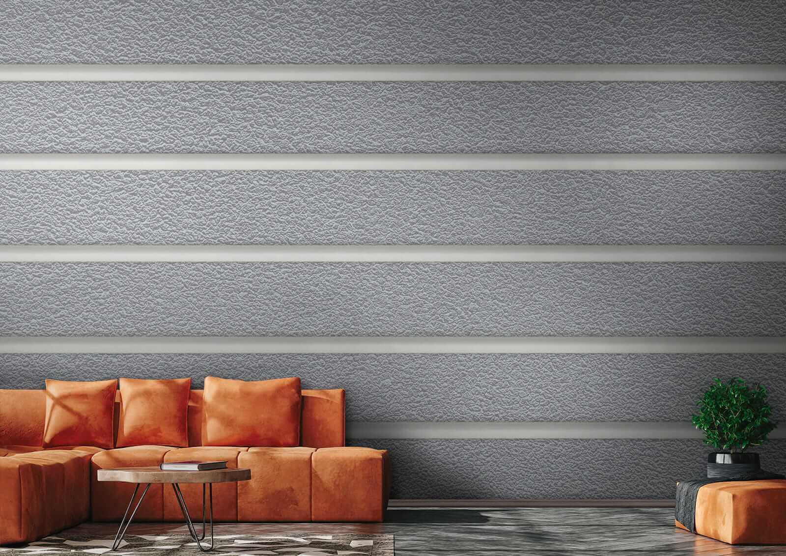 Il rivestimento vinilico è un sottile strato di PVC applicato a una base di tessuto non tessuto. La presenza del vinile rende la carta da parati resistente ai danni, consente una facile pulizia con una spugna umida e conferisce alla superficie una texture in rilievo, simile al tessuto di lino.