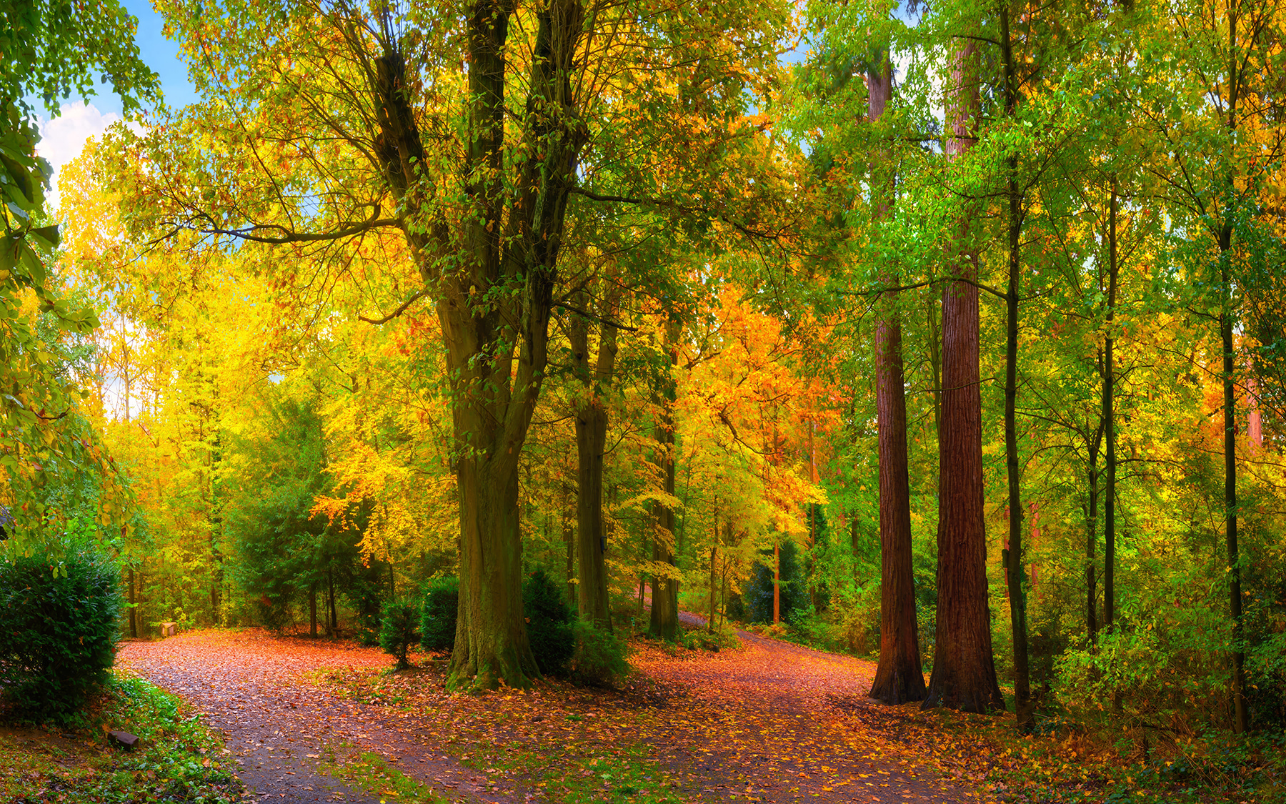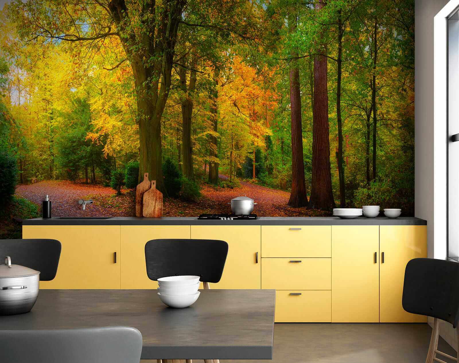 1 recensione per Carta da parati Foresta autunnale colorata con sentiero tortuoso