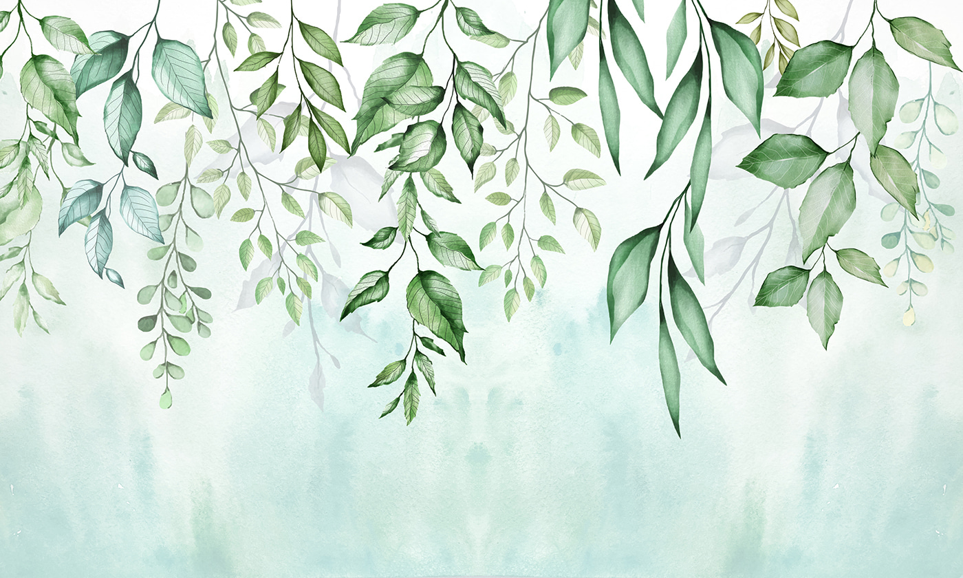 Carta da parati Le foglie acquerellate creano un motivo sereno. (SKU: u08700)