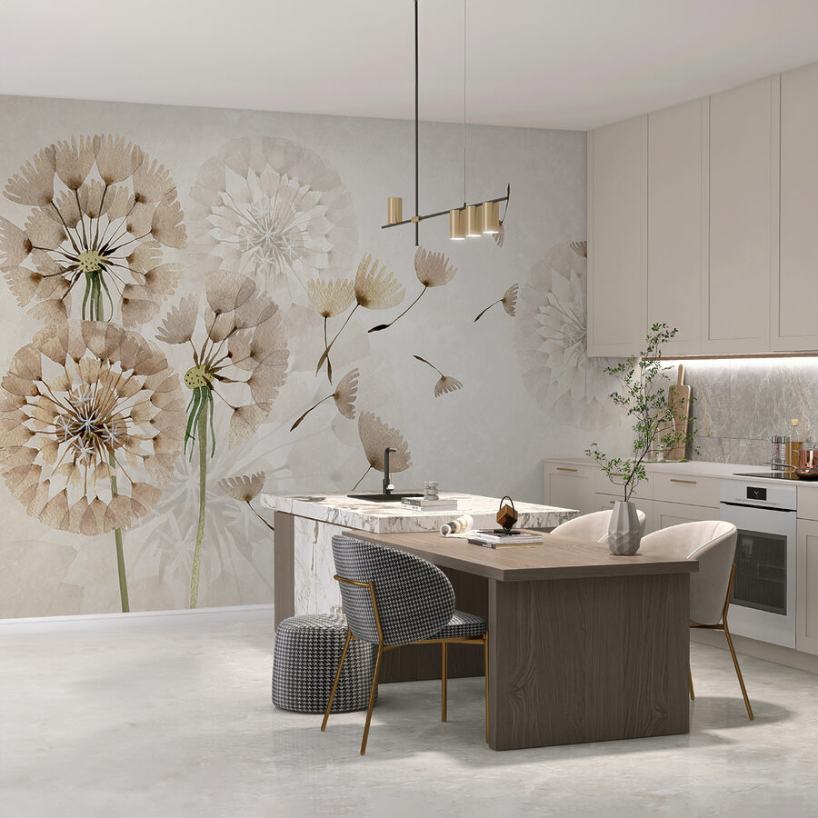 Immaginate di entrare in una stanza e di sentire immediatamente una brezza di calma… È quello che fa questo murale. “Delicati denti di leone alla deriva con la brezza” cattura quei momenti in cui il tempo sembra volatilizzarsi. Perfetto per la camera di un bambino o per il rifugio di un adolescente, questo murale aggiunge un tocco di estrosità e meraviglia a qualsiasi spazio. E le tonalità della terra? Sono come un abbraccio visivo, caldo e invitante. Si adatta perfettamente a qualsiasi angolo della cameretta o della zona relax di un ragazzo. Ad ogni sguardo si percepiscono i morbidi sussurri della natura… come un sogno ad occhi aperti dipinto sulla parete!