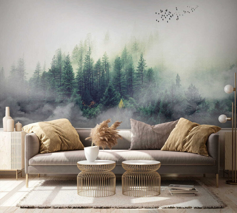 Immaginate di guardare una foresta nebbiosa ogni mattina: oh, la tranquillità! Questo murale, “Immagine sfocata del volto di una persona”, è come se portasse l’atmosfera accogliente di una baita nel vostro salotto. La foresta sembra così magica, come se si potesse camminare nel verde sereno e perdersi nella natura. Inoltre, gli uccelli che volano in lontananza aggiungono un tocco di fantasia.