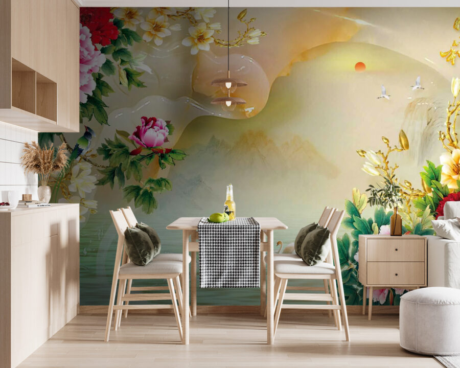 Trasforma qualsiasi spazio in un’oasi di tranquillità con questo incantevole murale che raffigura fiori vivaci e graziosi cigni. I fiori di peonia risaltano con i loro colori, creando un’atmosfera vivace, mentre i cigni sereni scivolano su una superficie d’acqua da sogno, invitando a trascorrere un pomeriggio rilassante. Immagina di sorseggiare un tè qui, sentendoti come se fossi entrato in un dipinto ad acquerello. Questo pezzo è perfetto per pareti d’accento o angoli accoglienti, fondendo senza sforzo la bellezza della natura con il tuo arredamento. Non è solo arte, è un invito a fermarsi, respirare e godersi un po’ di più la vita.