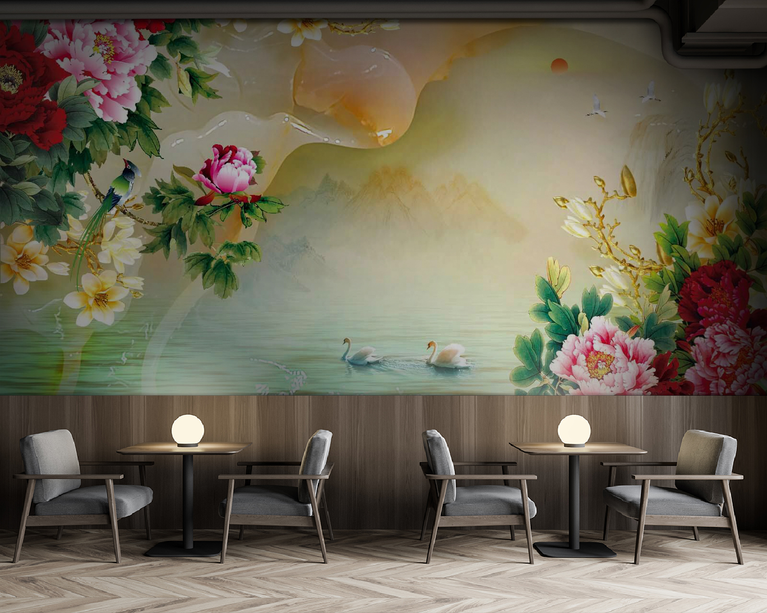 Trasforma qualsiasi spazio in un’oasi di tranquillità con questo incantevole murale che raffigura fiori vivaci e graziosi cigni. I fiori di peonia risaltano con i loro colori, creando un’atmosfera vivace, mentre i cigni sereni scivolano su una superficie d’acqua da sogno, invitando a trascorrere un pomeriggio rilassante. Immagina di sorseggiare un tè qui, sentendoti come se fossi entrato in un dipinto ad acquerello. Questo pezzo è perfetto per pareti d’accento o angoli accoglienti, fondendo senza sforzo la bellezza della natura con il tuo arredamento. Non è solo arte, è un invito a fermarsi, respirare e godersi un po’ di più la vita.