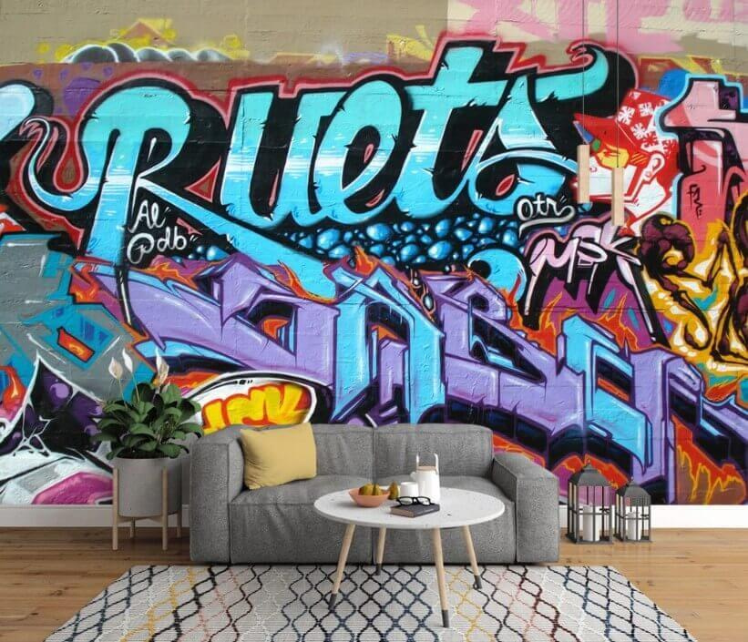 Perfetto per gli adolescenti o i giovani adulti che vogliono un po’ di atmosfera cittadina nel loro spazio, questo murale urla personalità senza dire una parola. I colori vivaci e i disegni intricati danno l’impressione di passeggiare in un vicolo artistico di una città vivace.