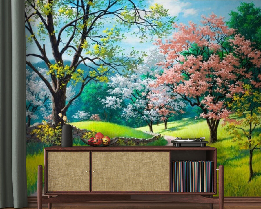 Immagina di entrare in un rifugio sereno ogni volta che entri nella tua stanza. Questo murale, “Strada sterrata attraverso un campo erboso con alberi”, cattura perfettamente questa sensazione. Si può quasi sentire il leggero fruscio delle foglie e il dolce cinguettio degli uccelli in lontananza. Con i suoi vivaci toni di verde e i giocosi tocchi di rosa e bianco dei fiori, invita a sognare ad occhi aperti piacevoli passeggiate lungo un sentiero baciato dal sole. Perfetto per un accogliente soggiorno o una tranquilla camera da letto, porta la natura in casa, senza bisogno di guanti da giardinaggio! Appendetelo, respirate a fondo e lasciate che il vostro spazio diventi una deliziosa oasi di pace. Seriamente, chi ha bisogno di una vacanza quando le vostre pareti possono fare al caso vostro?