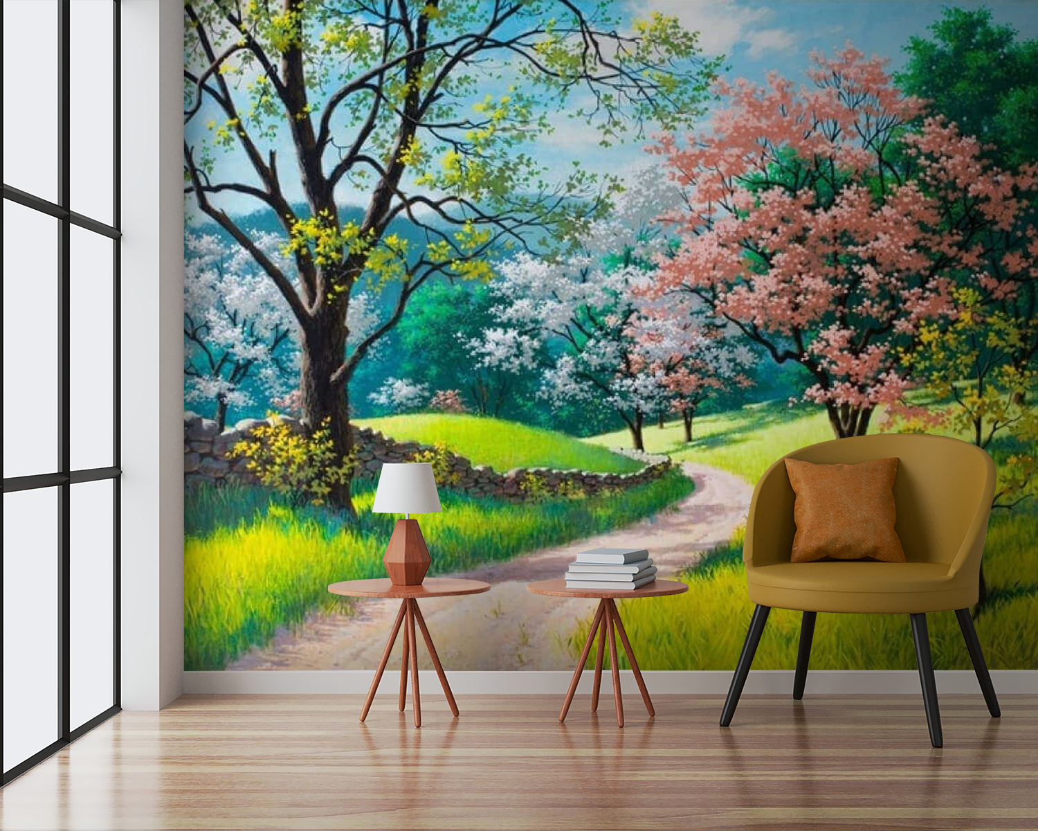 Immagina di entrare in un rifugio sereno ogni volta che entri nella tua stanza. Questo murale, “Strada sterrata attraverso un campo erboso con alberi”, cattura perfettamente questa sensazione. Si può quasi sentire il leggero fruscio delle foglie e il dolce cinguettio degli uccelli in lontananza. Con i suoi vivaci toni di verde e i giocosi tocchi di rosa e bianco dei fiori, invita a sognare ad occhi aperti piacevoli passeggiate lungo un sentiero baciato dal sole. Perfetto per un accogliente soggiorno o una tranquilla camera da letto, porta la natura in casa, senza bisogno di guanti da giardinaggio! Appendetelo, respirate a fondo e lasciate che il vostro spazio diventi una deliziosa oasi di pace. Seriamente, chi ha bisogno di una vacanza quando le vostre pareti possono fare al caso vostro?