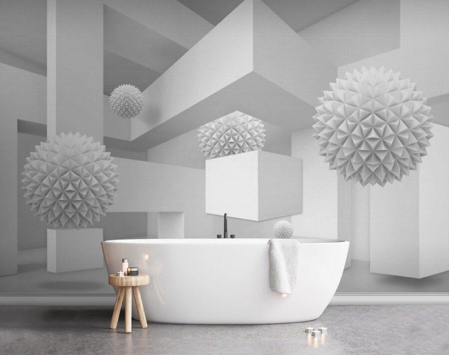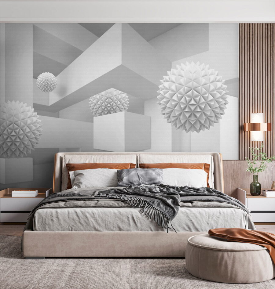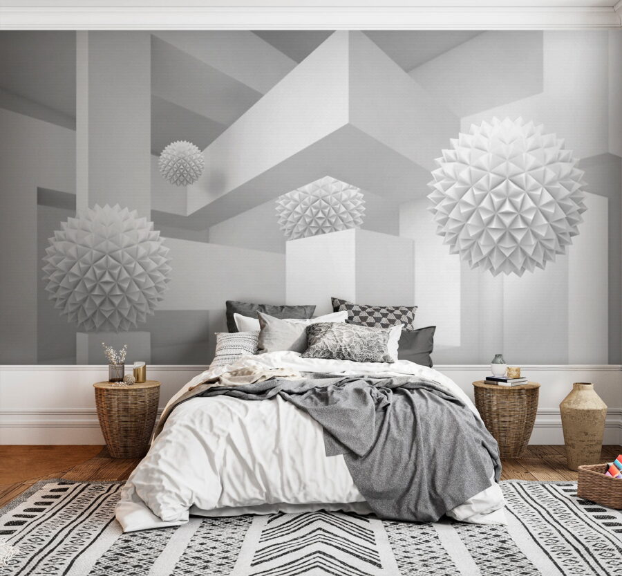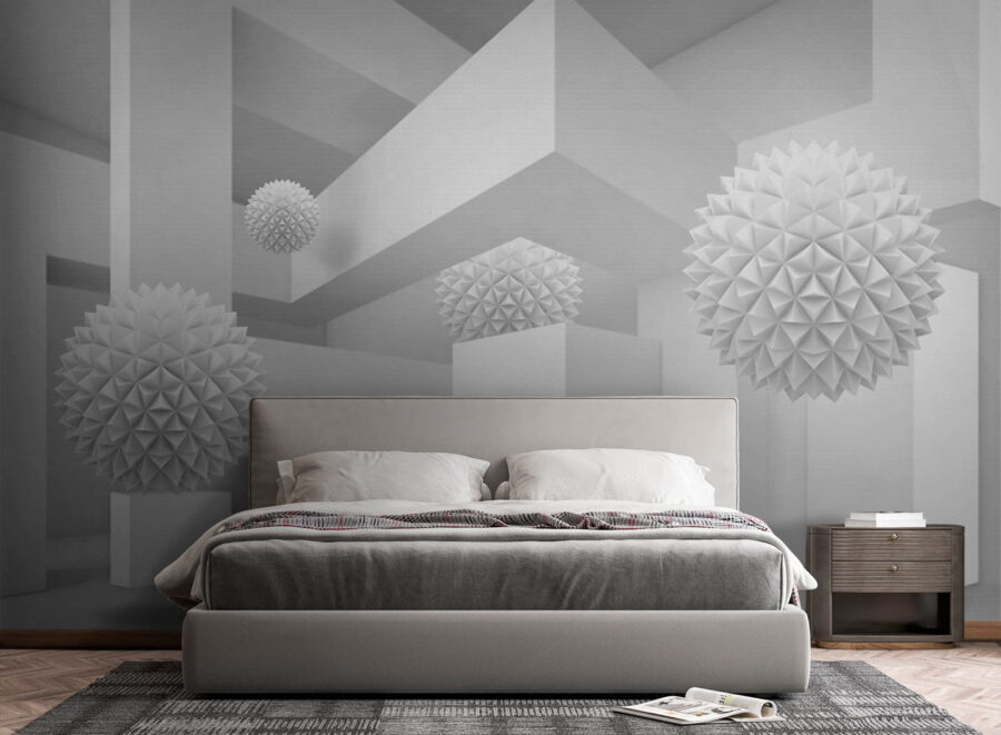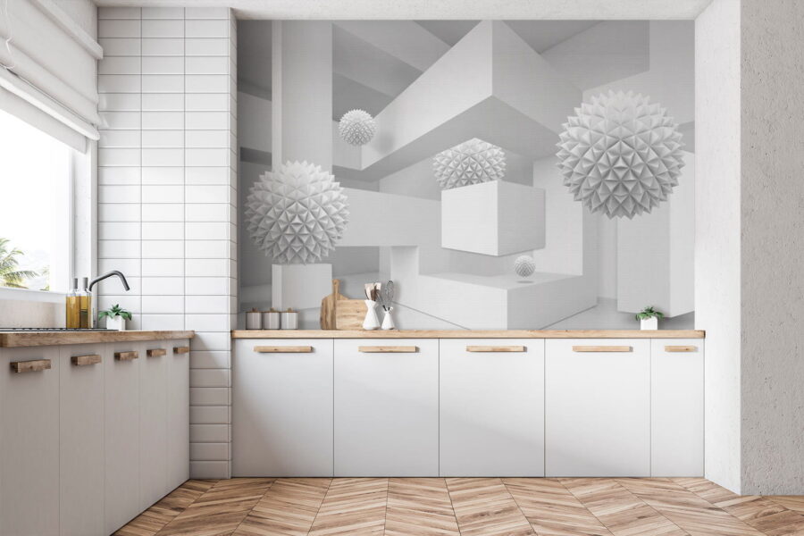 Immaginate di entrare in uno spazio sereno e sognante dove il bianco è il protagonista. Questo murale, che raffigura una stanza pulita e luminosa piena di eccentriche palline tridimensionali, sembra un’avventura stravagante nella semplicità. Le forme giocose spiccano sullo sfondo, invitando a sguardi curiosi e sorrisi gentili. Perfetta per un salotto moderno o per un angolo creativo, trasforma qualsiasi parete in un argomento di conversazione. Immaginate di ospitare degli amici, con gli occhi che si illuminano per lo sconcerto e le risate che si scatenano mentre cercano di capire la storia che si cela dietro queste forme fluttuanti. Non è solo un murale: è un’esperienza che aspetta di essere vissuta.
