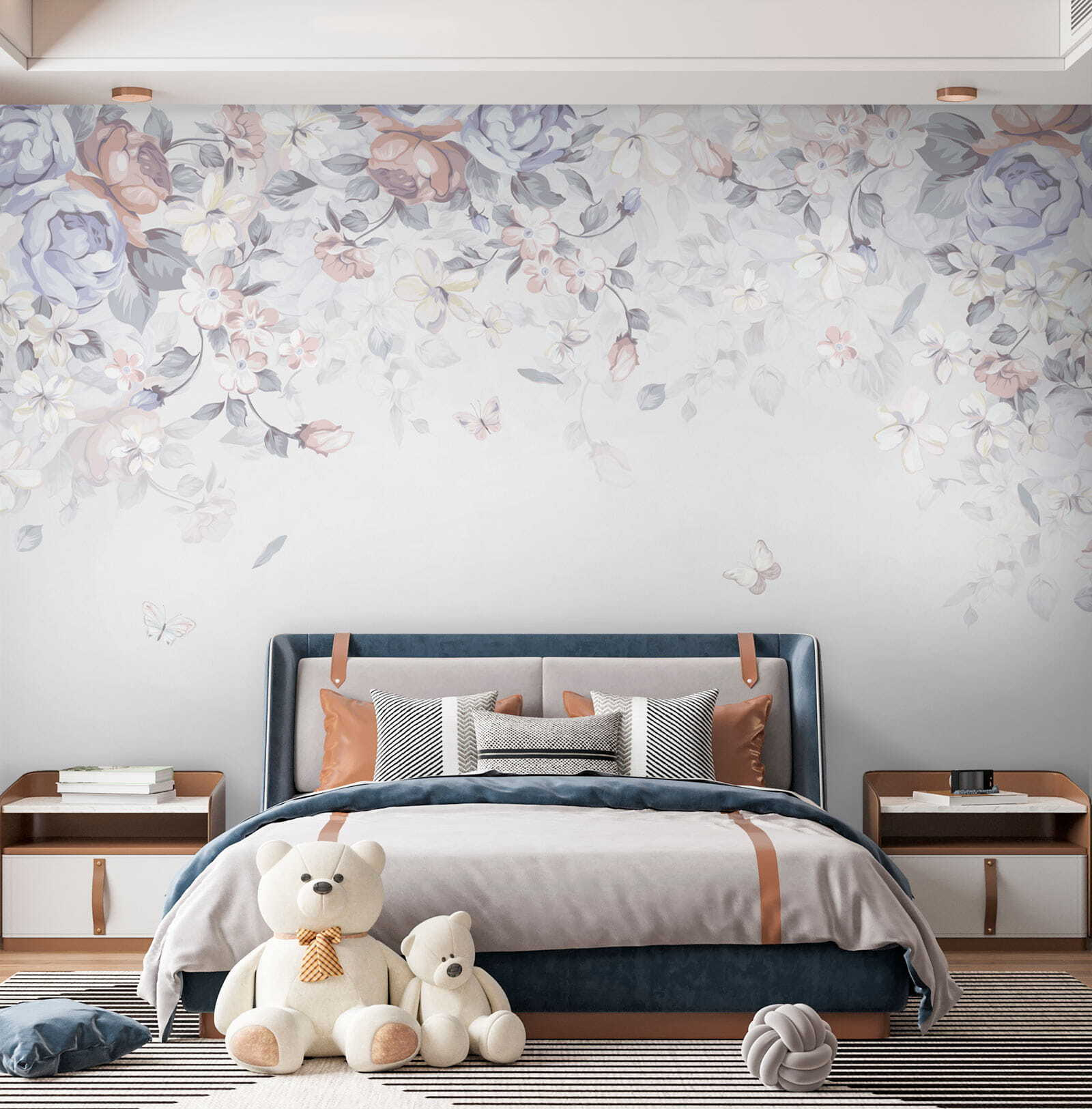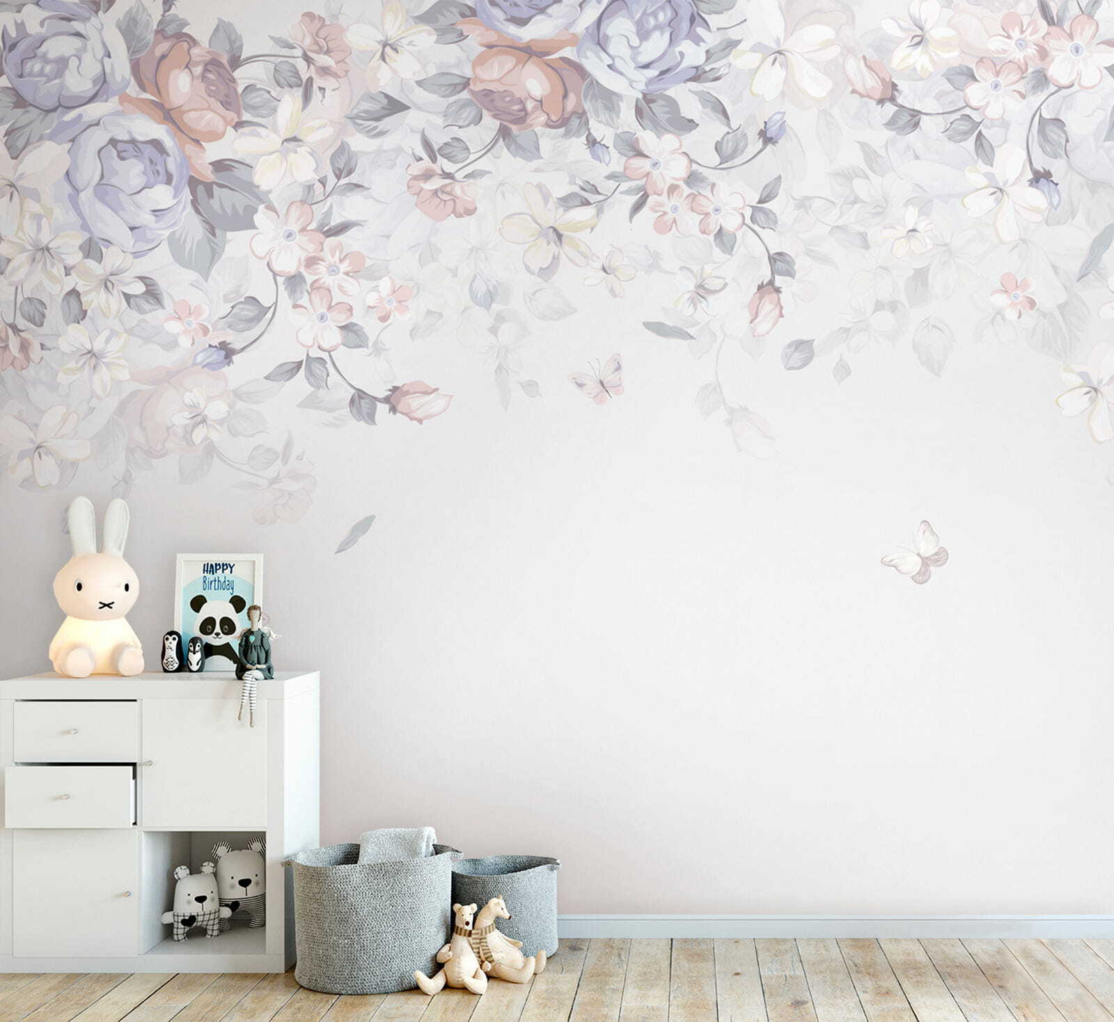 2 recensioni per Carta da parati Fiori pastello e farfalle svolazzano