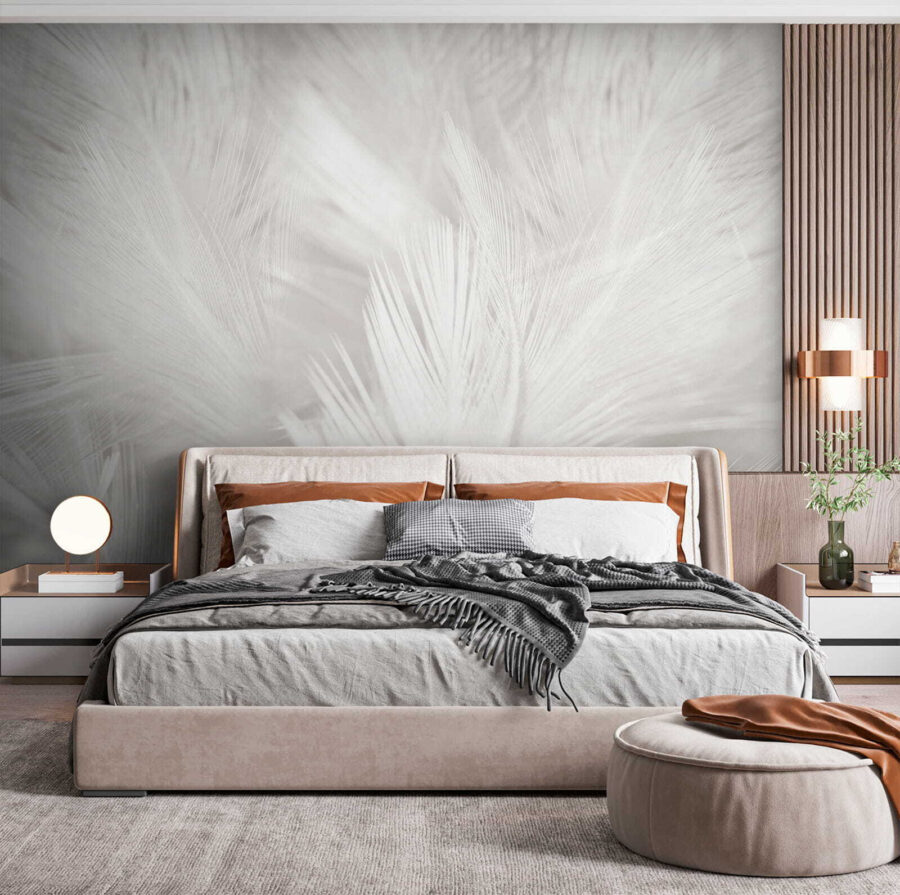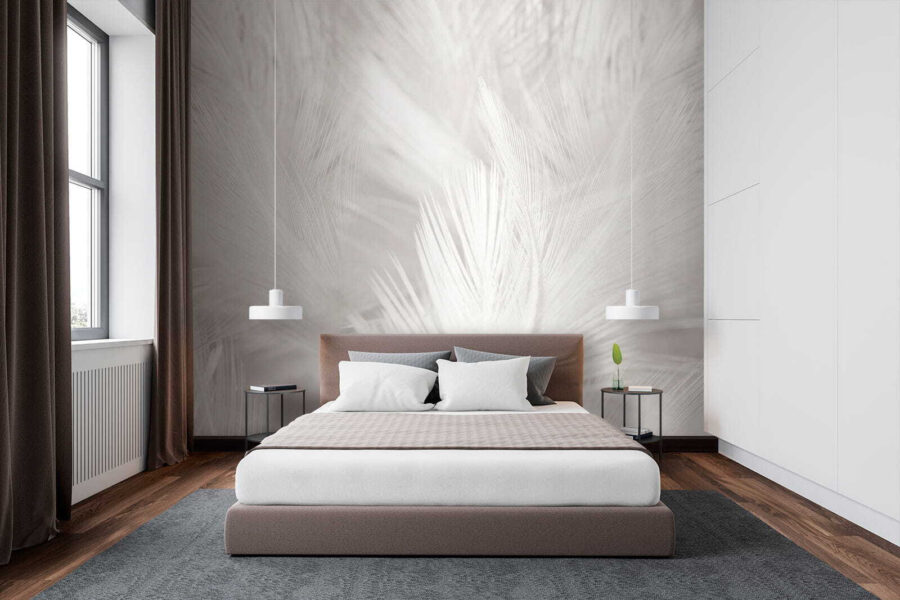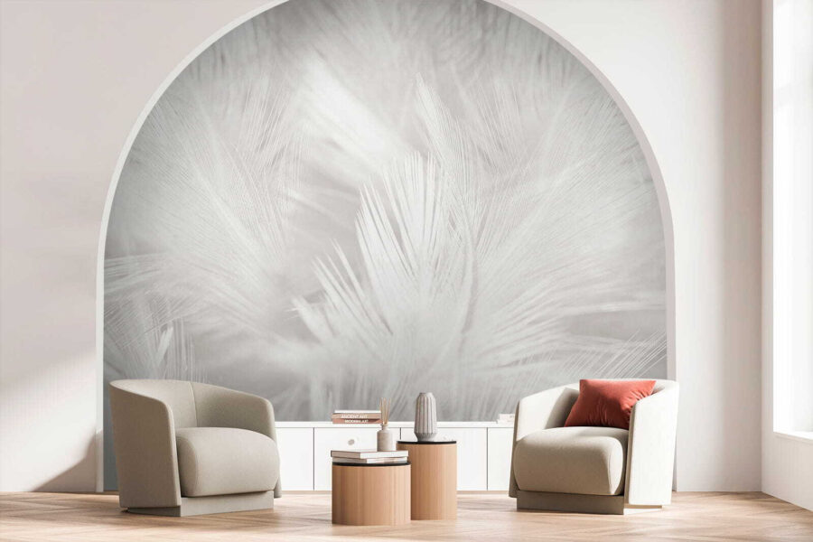 La morbidezza del bianco su bianco emana un’atmosfera serena e, davvero, a chi non farebbe bene un po’ di pace in più nel proprio spazio? Perfetto per le serate accoglienti o le mattine tranquille con una tazza di caffè. E non si tratta solo di estetica! Questo murale può far sembrare qualsiasi stanza più spaziosa e ariosa.