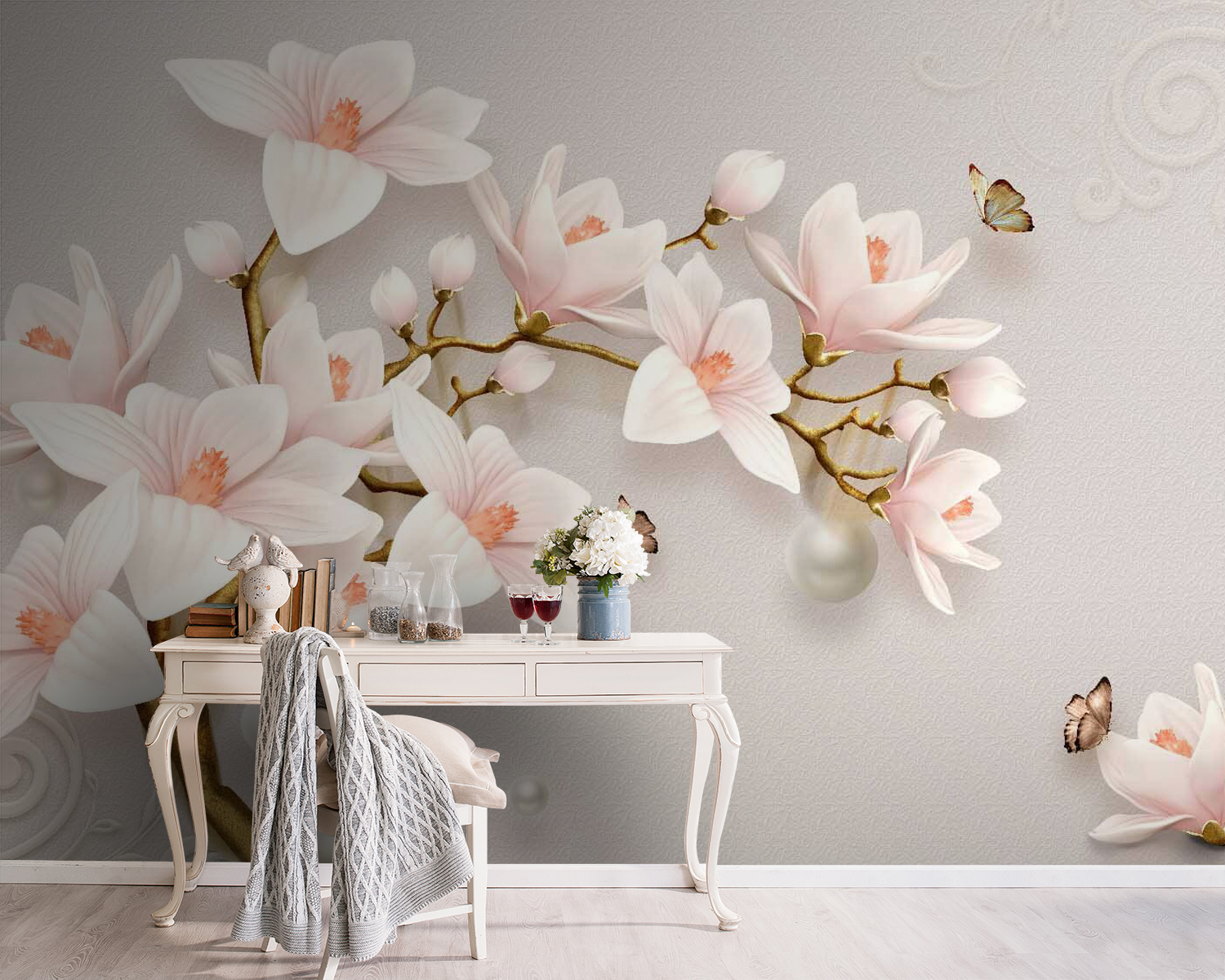 Trasforma il tuo spazio con questi incantevoli murales caratterizzati da delicati fiori dai toni tenui. Immagina di entrare in una stanza dove i sussurri floreali e i colori delicati creano un’atmosfera rilassante come una tazza di tè caldo. Perfetto per quelle serate accoglienti o anche per una festa danzante improvvisata nel tuo salotto: chi non ama una piccola pausa per ballare? Le incantevoli complessità dei fiori fluttuano con grazia, quasi invitando le farfalle a unirsi al divertimento. Questo murale non è solo decorativo, ma racconta una storia, ti avvolge nella calma e fa sbocciare le tue pareti con la vita. Perfetto per chiunque desideri un po’ di natura in casa o semplicemente un tocco di bellezza.