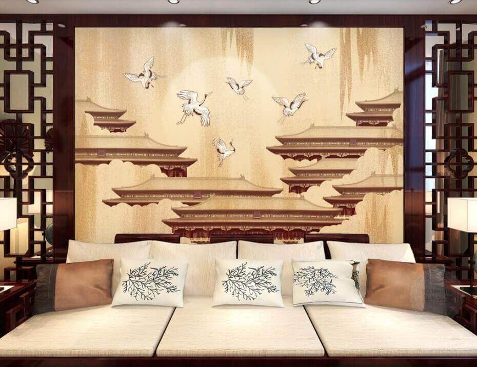 Immaginate di entrare in una stanza adornata da questo splendido murale di gru che si librano con grazia nel cielo. Ogni uccello sembra catturato in un momento di libertà, planando sopra eleganti tetti che sussurrano storie di terre lontane. Questo murale non si limita a decorare la parete, ma trasforma l’intero spazio, invitando alla pace e alla serenità.
