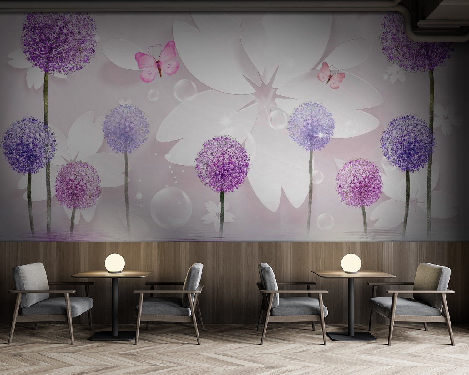 1 recensione per Carta da parati Fiori viola e farfalle in armonia