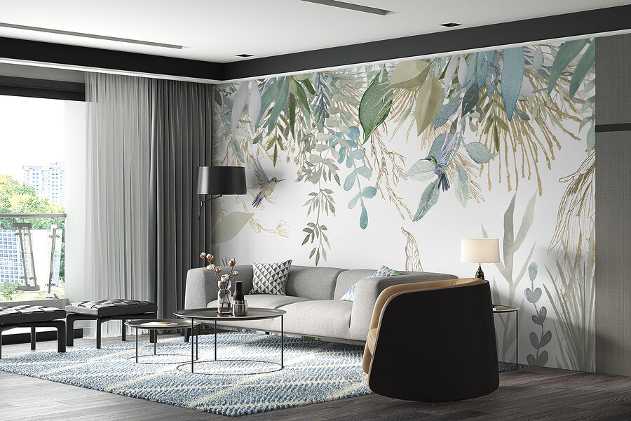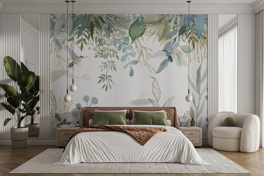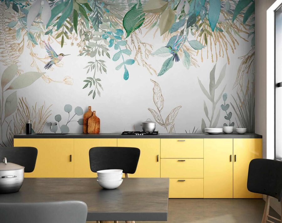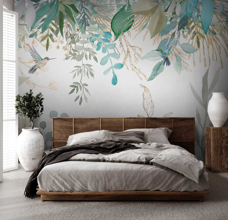 5 recensioni per Carta da parati Illustrazione di colibrì tra il fogliame lussureggiante