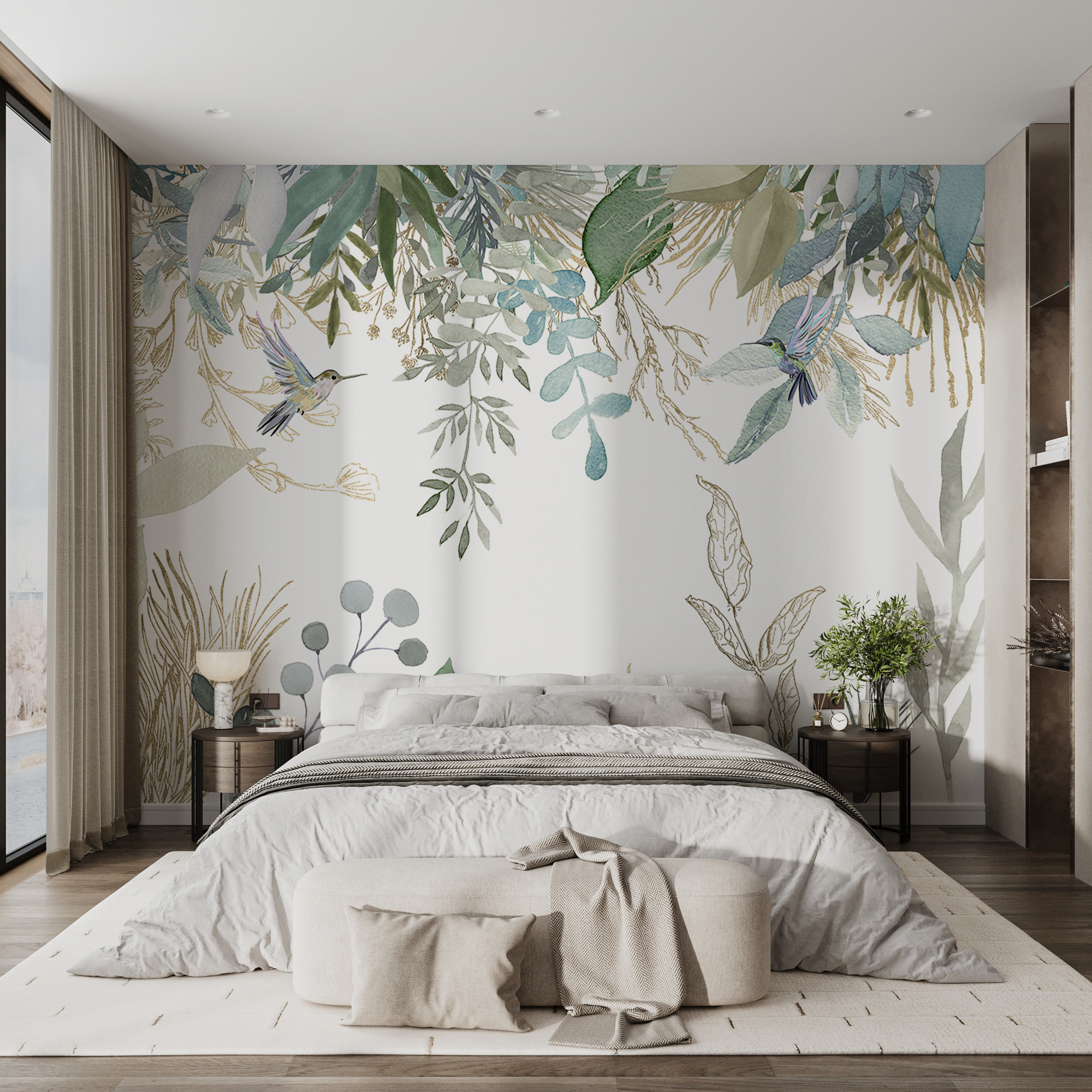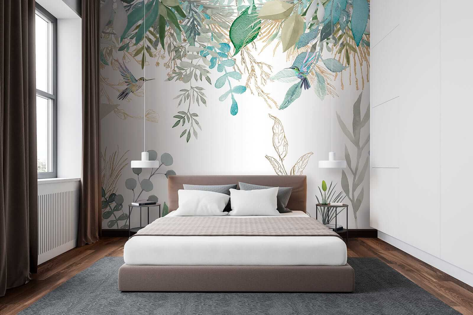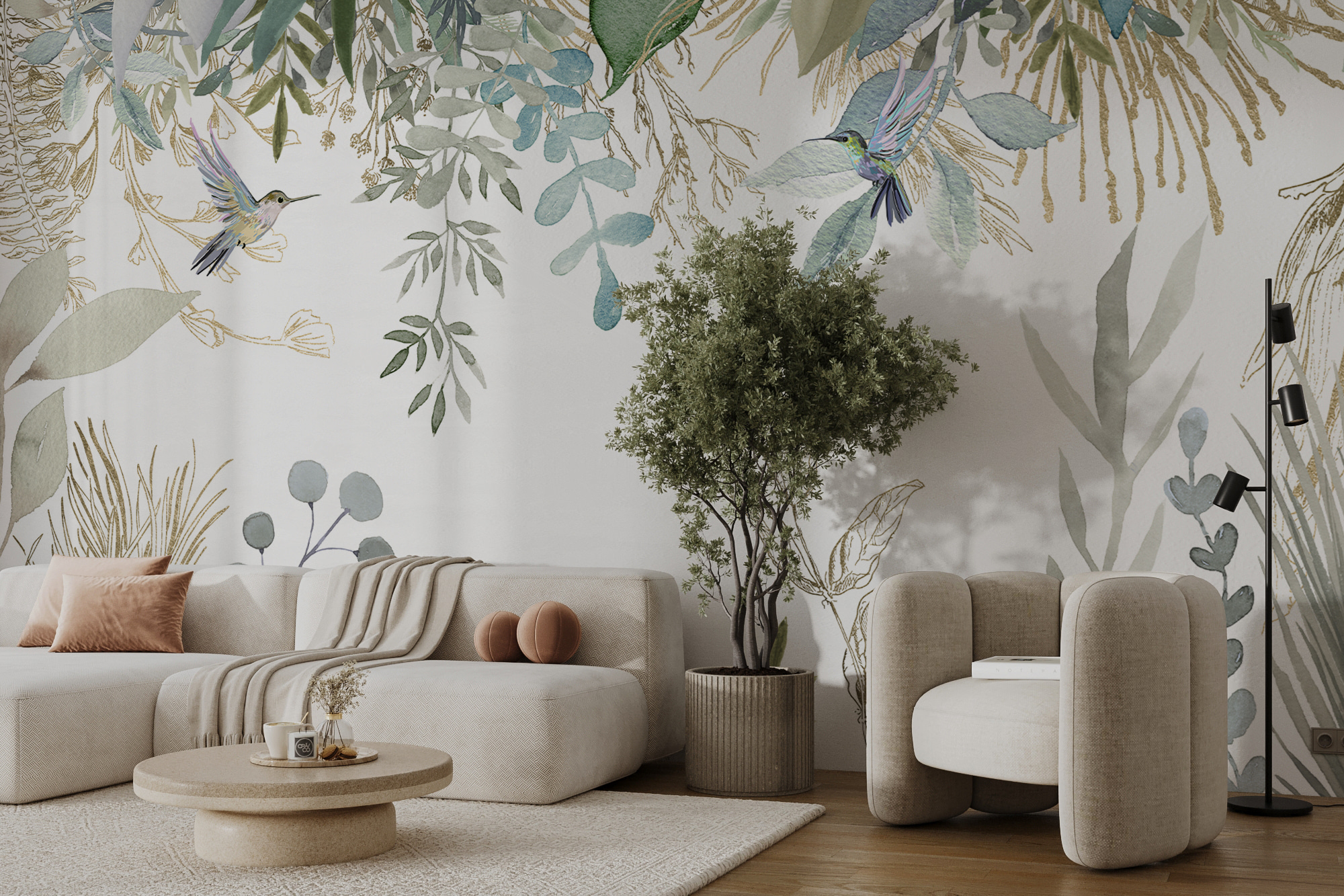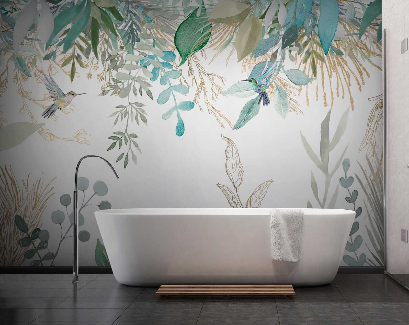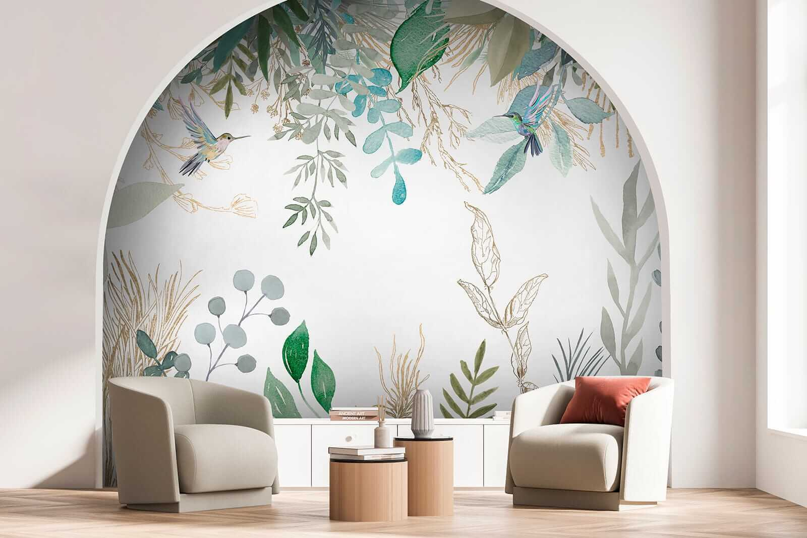 5 recensioni per Carta da parati Illustrazione di colibrì tra il fogliame lussureggiante