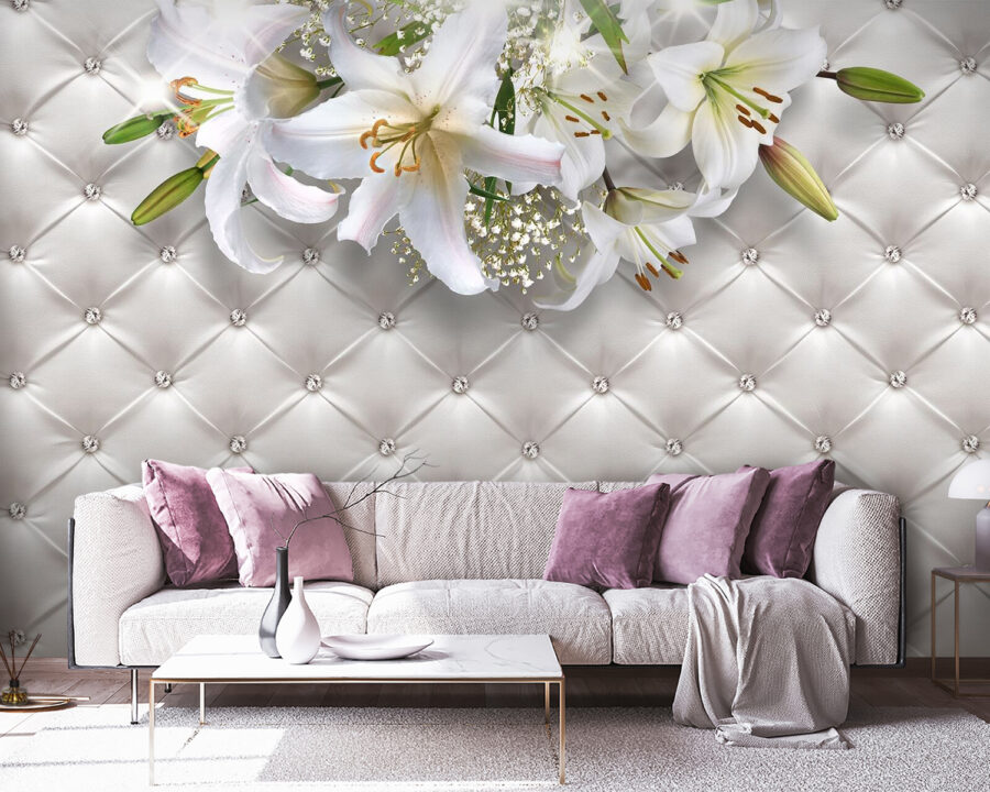 Carta da parati Gruppo di fiori bianchi su sfondo bianco (SKU: u18990)