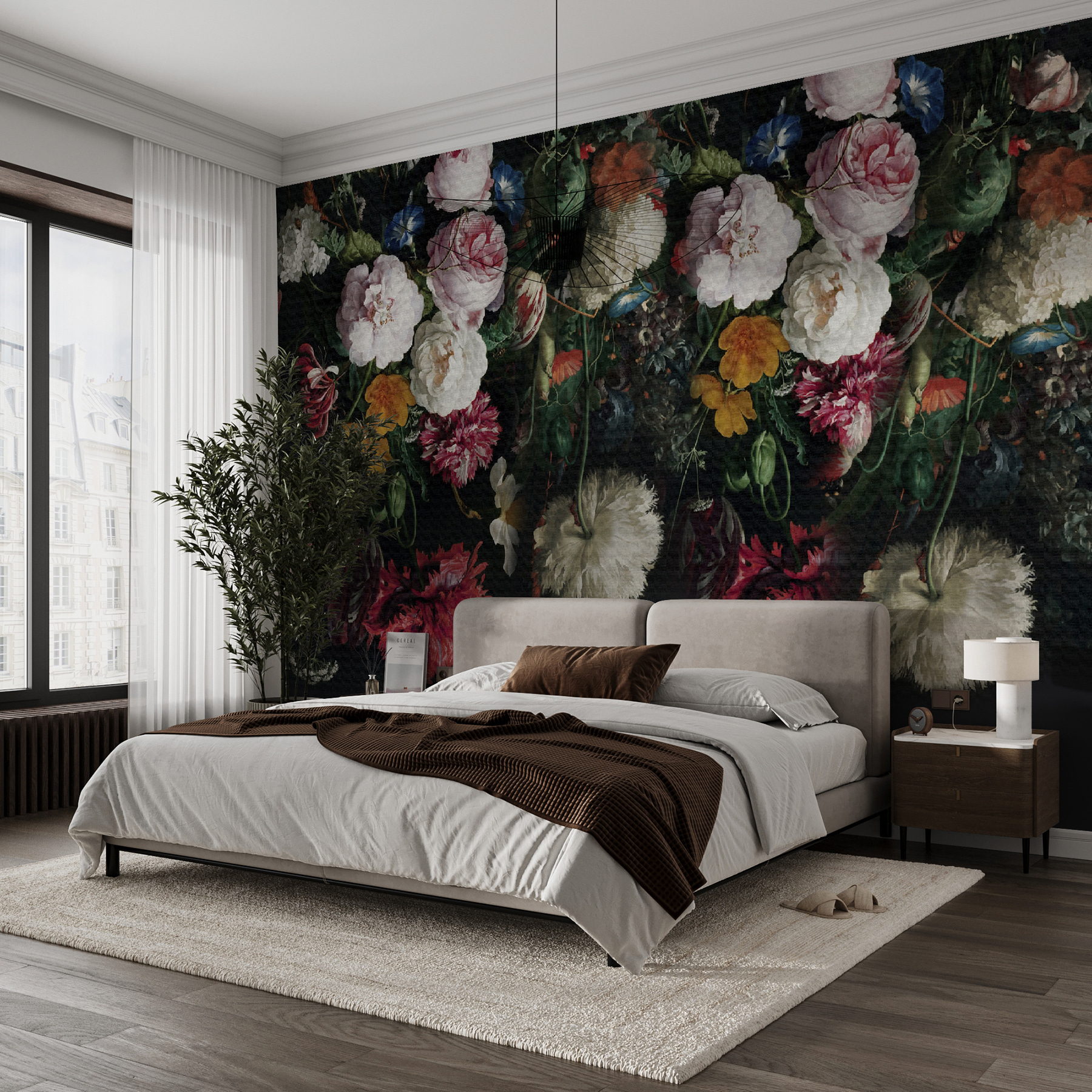 “Vivid Blossoms Cascade in Darkness” è come uno splendido giardino segreto nel vostro salotto! Immaginate fiori vibranti che sembrano fluttuare su uno sfondo ricco e scuro: è come una cartolina da sogno da un paese delle meraviglie di mezzanotte. Questo murale ha un fascino magnetico che vi attira, facendovi sentire come se poteste praticamente toccare i petali.