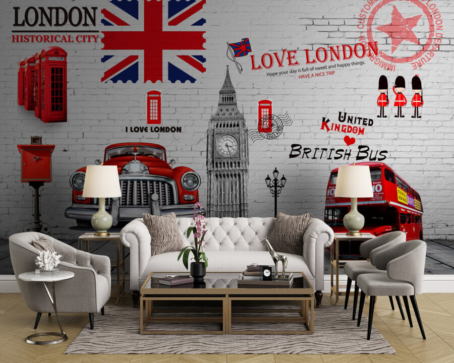 Il fascino di Londra direttamente nel vostro salotto! Questo murale “Red Double Decker Bus” è come un accogliente abbraccio della città stessa. Immaginate di svegliarvi con l’iconico Big Ben, le eccentriche cabine telefoniche rosse e l’autobus vintage che vi aspetta per portarvi all’avventura. È perfetto per chiunque ami un tocco di colore e una dose di vibrazioni cittadine.