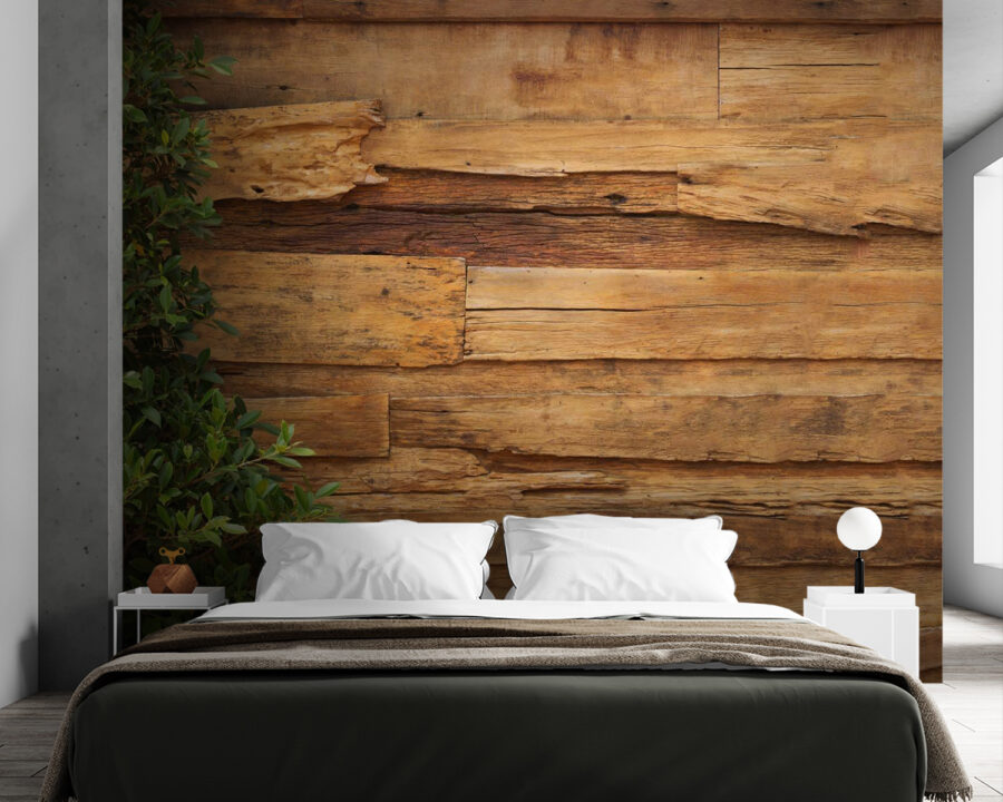 Gli ospiti potrebbero chiedersi se avete costruito voi la parete: è così convincente! È perfetto per aggiungere profondità e consistenza, un po’ come se fosse il vostro rifugio nella foresta, ma senza schegge. Installatela in camera da letto per ottenere una sensazione di calore e intimità, oppure in ufficio per creare uno sfondo unico che farà sicuramente nascere una conversazione. Si tratta di creare uno spazio che sembri allo stesso tempo vintage e fresco, con un po’ di fascino robusto e molto cuore. Godetevi una fetta di vita all’aria aperta, senza gli insetti!