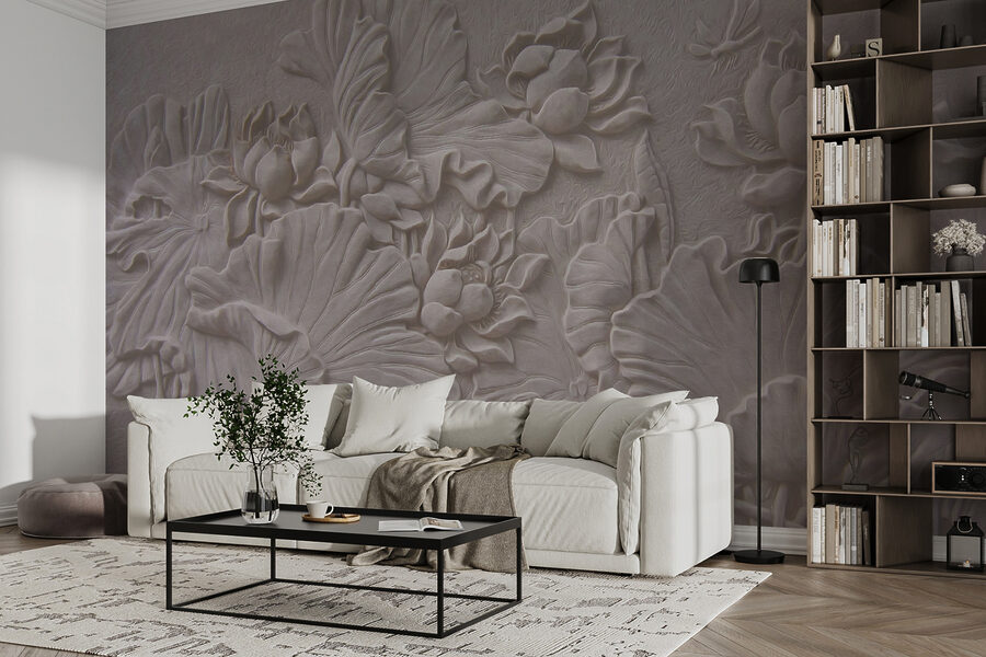Carta da parati Carta da parati Intricata opera d’arte floreale in pietra a rilievo (SKU: u21336)