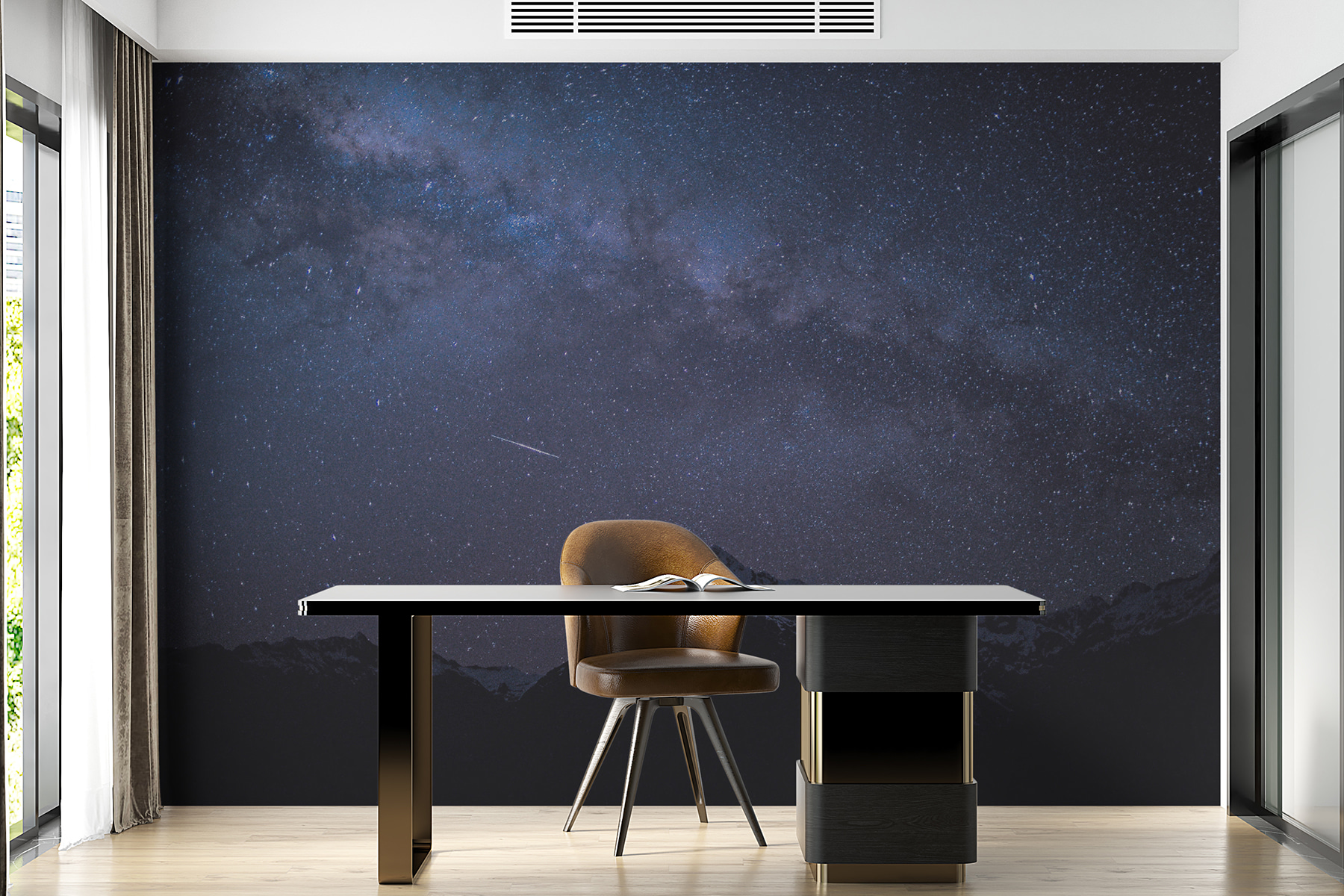 Immaginate di entrare in un rifugio accogliente dove le montagne frastagliate incontrano una pioggia di stelle: ecco la magia di questo murale! Trasforma la vostra parete in un paesaggio notturno mozzafiato, invitando la calma delle montagne direttamente nel vostro spazio. Immaginate una poltrona accogliente, magari con una bevanda calda in mano, mentre lo sguardo si dirige verso le cime che sembrano sussurrare i segreti dell’universo. È come avere una piccola fuga personale, perfetta per sognare ad occhi aperti o per fare due chiacchiere a tarda notte. Inoltre, chi non vorrebbe impressionare gli ospiti con una vista che dice: “Ehi, sono in piena montagna, almeno dal punto di vista dell’arredamento!”. Tutto sta nel creare un’atmosfera rilassante. Perfetto per ogni angolo: camere da letto, soggiorni o persino spazi di lavoro creativi.