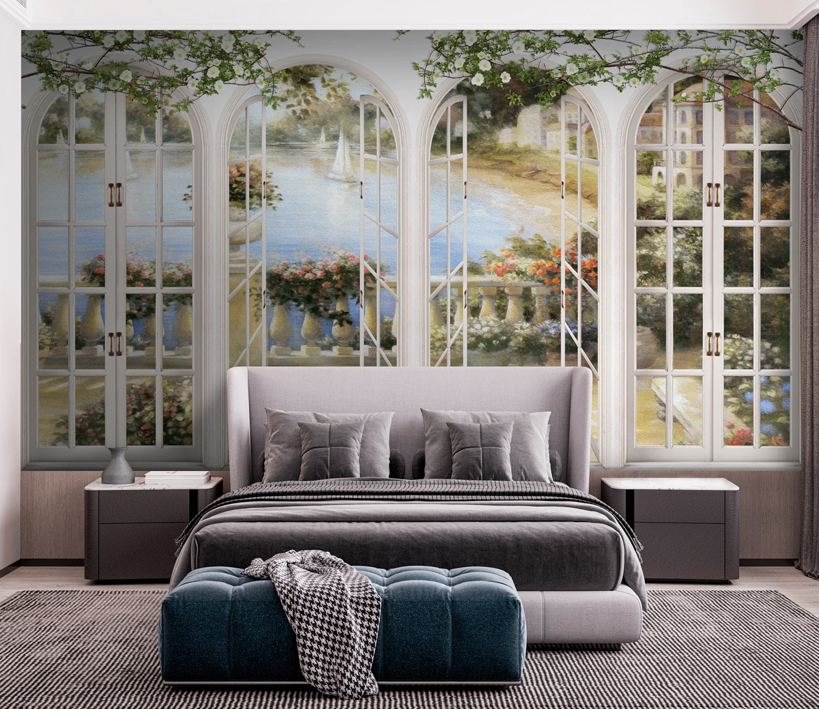 Avete mai desiderato portare un po’ più di esterno all’interno? Questo murale, “Vista panoramica attraverso porte ad arco”, fa proprio questo! Immaginate di svegliarvi ogni mattina con questa incantevole scena: le eleganti porte ad arco che si aprono su una splendida terrazza, fiori in piena fioritura e un lago sereno. È come entrare in una fuga da sogno senza uscire dalla propria stanza. Perfetto per far sembrare più grandiosi gli spazi piccoli o per dare a una stanza un’atmosfera fresca e aperta. E poi è molto più economico di una ristrutturazione! Che si tratti di un accogliente angolo di lettura o del vostro salotto, questo murale darà immediatamente un tocco di classe al vostro spazio e chi non ama una bella vista, anche se è solo sulla parete?