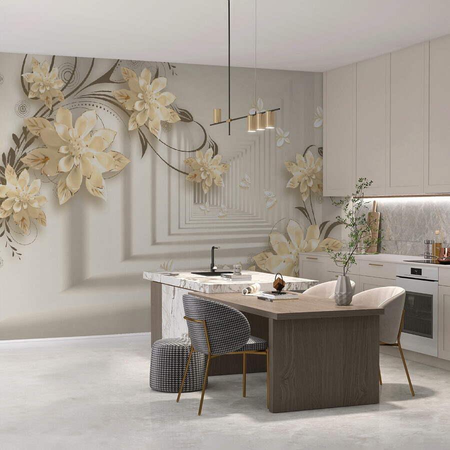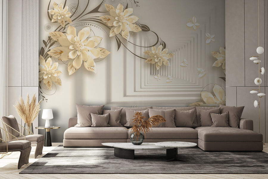 Immaginate di avere una parete che sembra un giardino stravagante, proprio nel vostro salotto! Questo murale “Elegante disegno floreale con farfalle” fa proprio questo. È come entrare in una fantasia serena dove i fiori sbocciano all’infinito e le farfalle svolazzano. Immaginate queste eleganti fioriture 3D che spuntano, creando un’atmosfera morbida e sognante… È come avere l’arte della natura in casa!