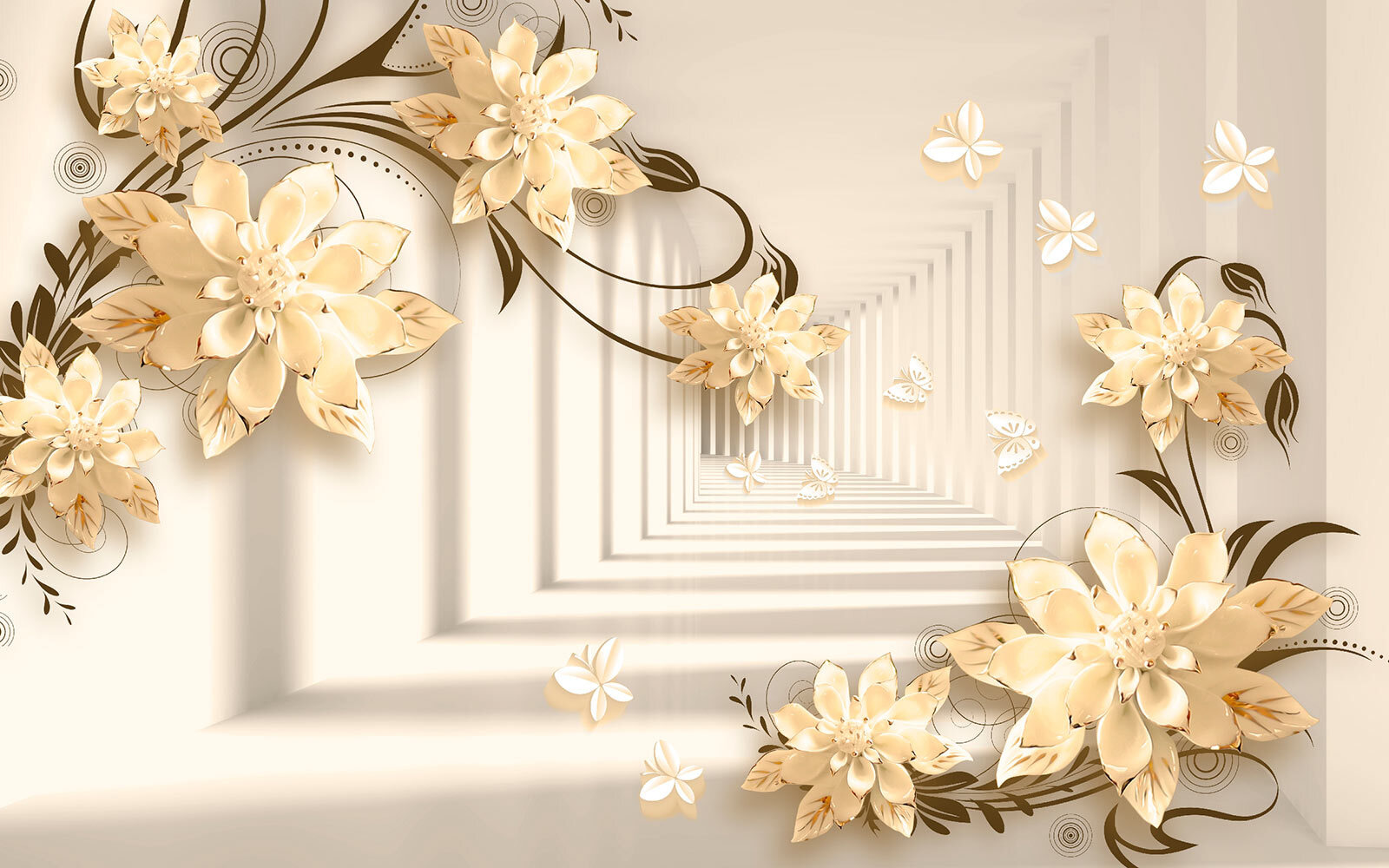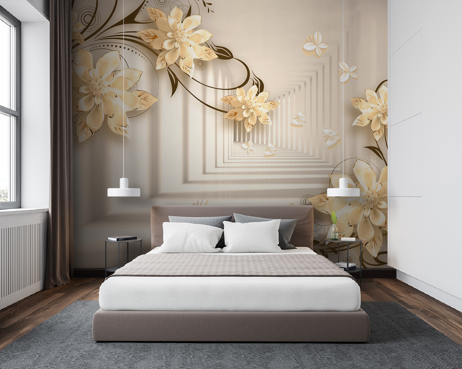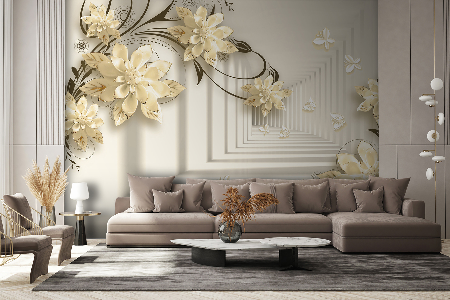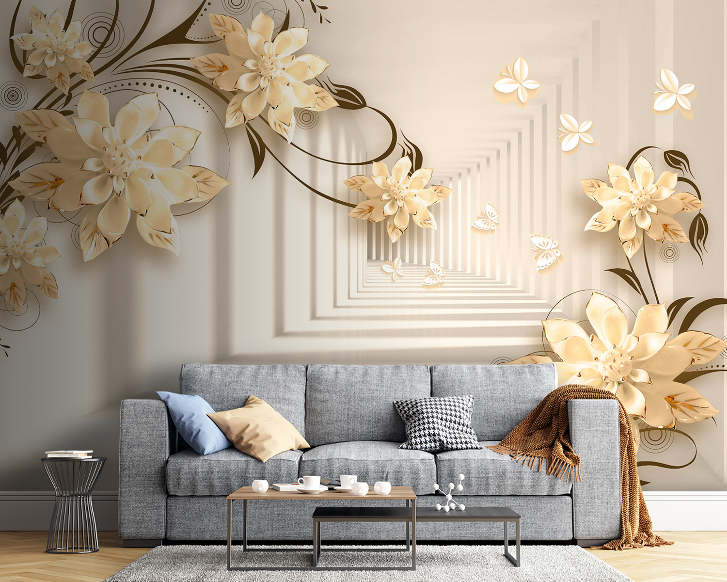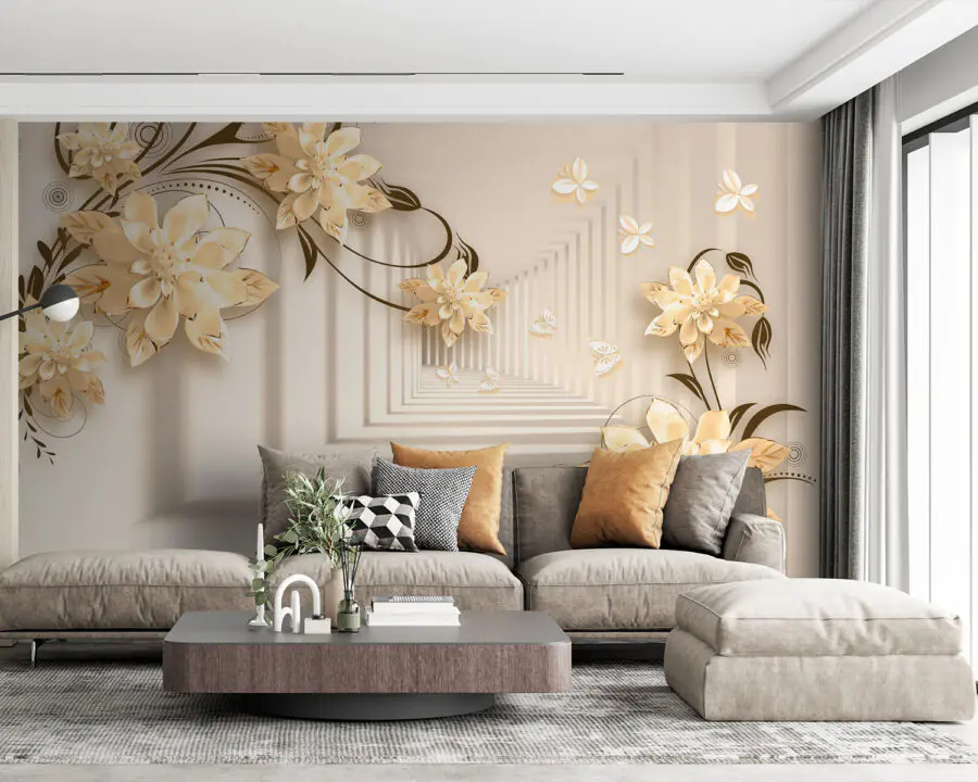Immaginate di avere una parete che sembra un giardino stravagante, proprio nel vostro salotto! Questo murale “Elegante disegno floreale con farfalle” fa proprio questo. È come entrare in una fantasia serena dove i fiori sbocciano all’infinito e le farfalle svolazzano. Immaginate queste eleganti fioriture 3D che spuntano, creando un’atmosfera morbida e sognante… È come avere l’arte della natura in casa!
