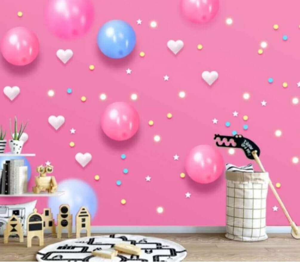 Brighten up any room with this delightful “Wall Murals Pink background with white and blue balloons and stars.” Just imagine stepping into a space filled with playful whimsy—like a never-ending party! Each balloon pops out against the soft pink backdrop, and those tiny stars? They sprinkle in a bit of magic.