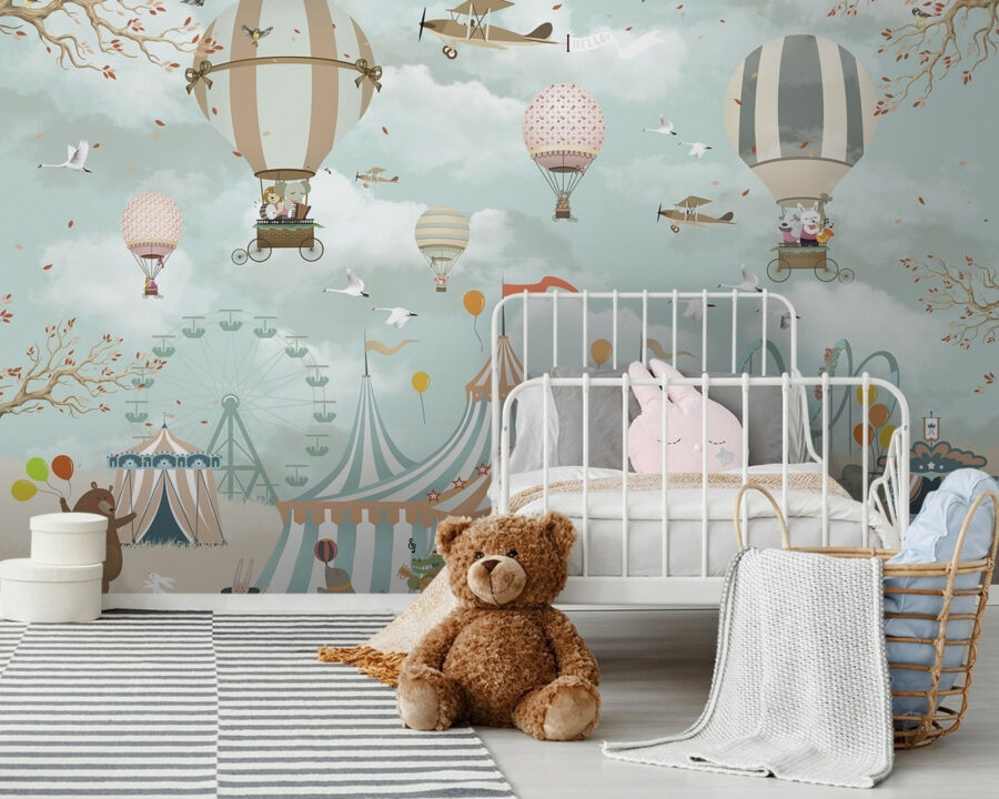 Immaginate di entrare in uno spazio che sembra un’avventura stravagante. Questo murale, caratterizzato da affascinanti mongolfiere e uccelli giocosi, crea un cielo delizioso dove l’immaginazione vola. Ogni personaggio porta con sé un po’ di gioia, scatenando storie e sogni ad occhi aperti, sia che si tratti di un coraggioso elefante o di un elegante orso con i palloncini. Perfetto per la camera dei bambini o per qualsiasi altro luogo in cui ci sia bisogno di una spruzzata di divertimento, evoca ricordi d’infanzia di gite al circo e di giornate di sole trascorse all’aperto. Trasformate la parete e lasciate che la magia prenda il volo: chi non vorrebbe lasciarsi andare sotto questo cielo incantato?