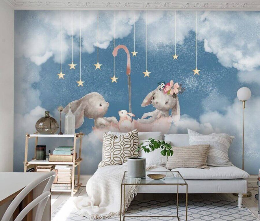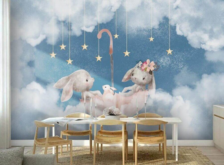 Trasforma il tuo spazio con il fascino delizioso di “Due coniglietti sotto un ombrello rosa”. Questo incantevole murale dona un tocco di allegria e fantasia a qualsiasi stanza, con adorabili coniglietti che fluttuano tra nuvole da sogno, collegati da un ombrello rosa brillante. È come un dolce abbraccio per le tue pareti, perfetto per rallegrare una cameretta, una stanza dei giochi o anche un accogliente angolo lettura. Immagina di sorseggiare un tè con questo murale come sfondo: chi non sorriderebbe? È come un piccolo pezzo di magia che suscita gioia. I colori tenui e i dettagli delicati invitano a sognare ad occhi aperti e a ridere, rendendo ogni sguardo una piccola fuga dalla realtà.
