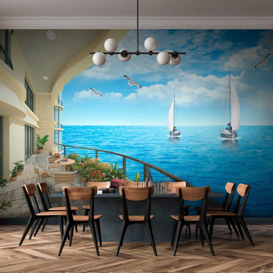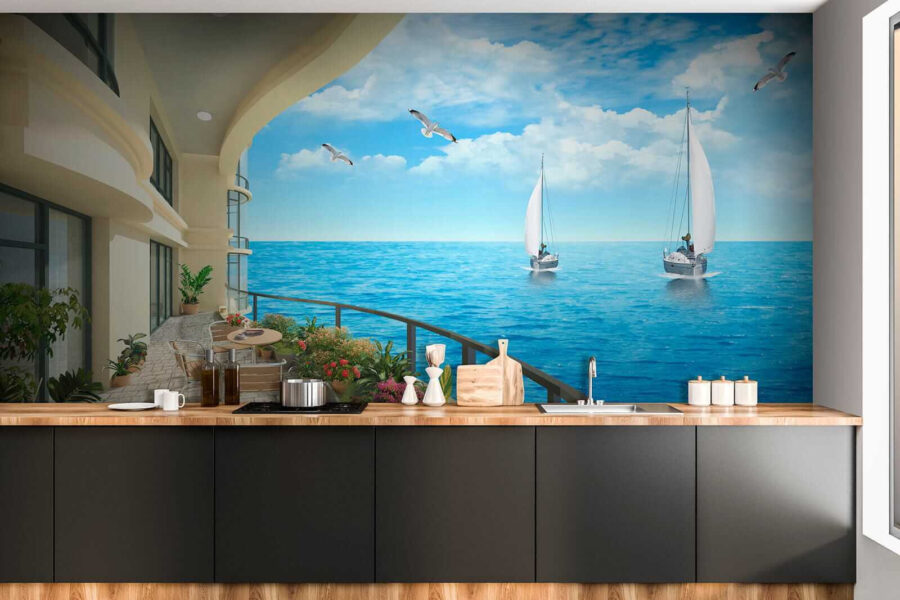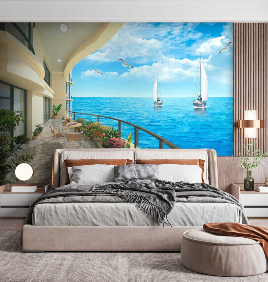 Immaginate di entrare in una stanza dove le pareti portano la brezza dell’oceano direttamente ai vostri sensi. Questo murale, che raffigura un balcone con una vista mozzafiato sull’oceano e le barche che si muovono pigramente sull’acqua, trasforma qualsiasi spazio in un rifugio costiero. Immaginate di sorseggiare il vostro caffè mattutino con la sinfonia delle onde e degli uccelli marini che riempiono l’aria: chi non lo vorrebbe? I blu vibranti e il verde lussureggiante invitano al relax. È come avere una vacanza infinita a casa propria, regalando alle pareti una boccata di aria fresca di mare. Perfetto per chi sogna ad occhi aperti o per chiunque abbia bisogno di un po’ di tranquillità nella propria vita. Appendetelo e lasciatevi trasportare dalle onde!