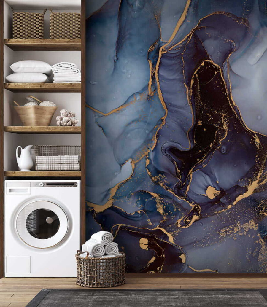 Trasformare una stanza può sembrare una magia, vero? Questo murale astratto con motivo a inchiostro è proprio quello che ci vuole per dare un tocco di incanto. Con le sue vorticose sfumature di blu e i suoi toni profondi, conferisce un’atmosfera artistica che sembra fresca e moderna. Chiunque entri in questo spazio potrebbe fermarsi ad ammirare lo straordinario gioco di colori. Immaginate serate accoglienti, con un caffè caldo in mano, mentre gli accenti delicati catturano la luce in modo perfetto. Questo murale sembra sussurrare storie di creatività, perfetto per un ufficio in casa o per un angolo di lettura. È come un abbraccio invitante per le vostre pareti!